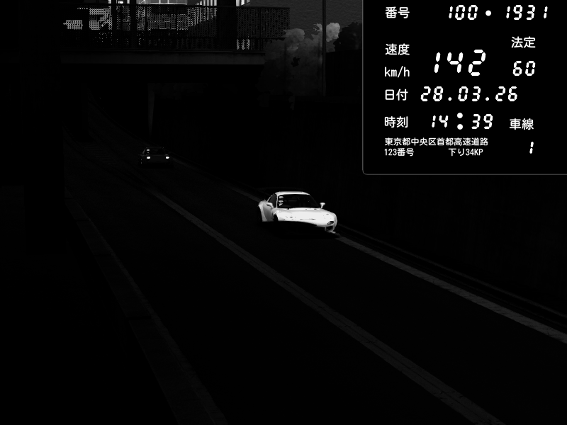 | 2026/03/27 23:00 | C1内回り 京橋 | 184 / 60 km/h | Ree | Mazda RX-7 FD3S FEED Afflux GT3 | CAPTURE |