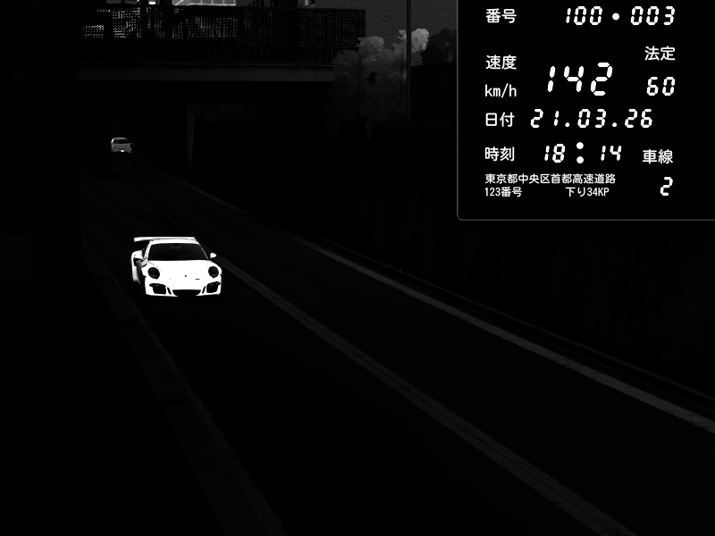 | 2026/03/21 18:14 | C1内回り 京橋 | 142 / 60 km/h | LittleClimb | Porsche 911 GT3 RS | CAPTURE |