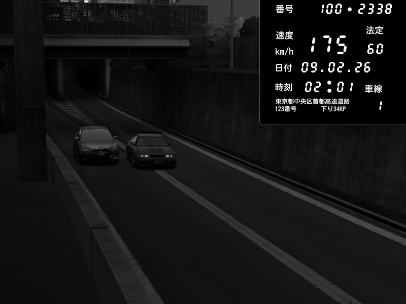 | 2026/02/08 00:21 | C1内回り 京橋 | 187 / 60 km/h | gc8 lover | Nissan Skyline GTR R33 (S3 - Wangan) | CAPTURE |