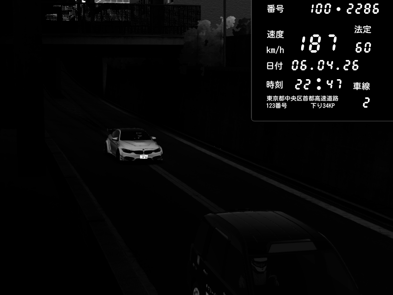 | 2026/04/06 22:47 | C1内回り 京橋 | 187 / 60 km/h | @SiriusVRChat | BMW M4 crash.Sp Varis Widebody | CAPTURE |
