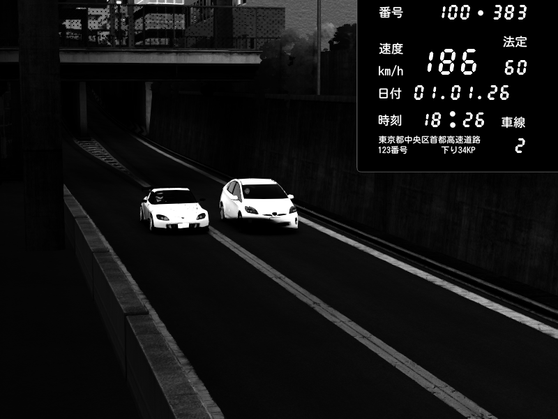 | 2026/01/01 18:26 | C1内回り 京橋 | 186 / 60 km/h | K.Hisashi | Honda S2000 (AP2 - Legendary) | CAPTURE |