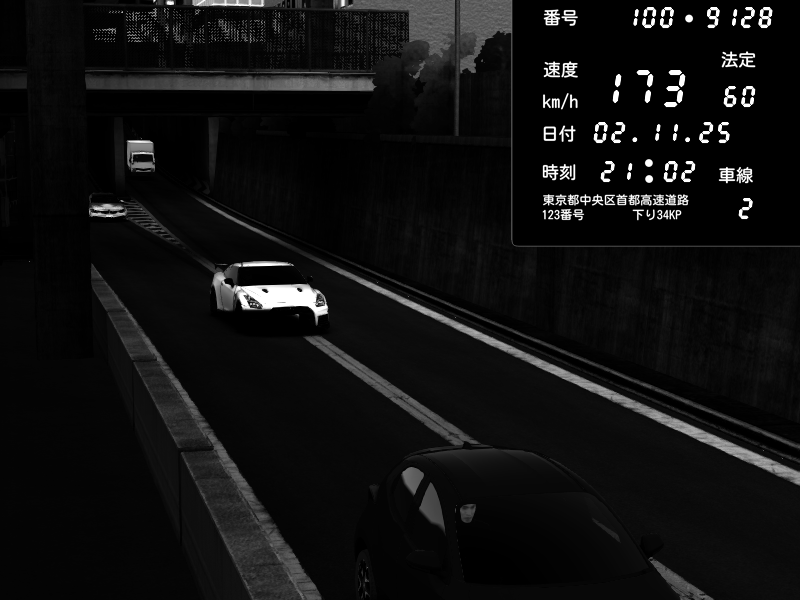 | 2025/11/02 21:02 | C1内回り 京橋 | 173 / 60 km/h | Exydeus | Nissan GT-R NISMO 2017 | CAPTURE |