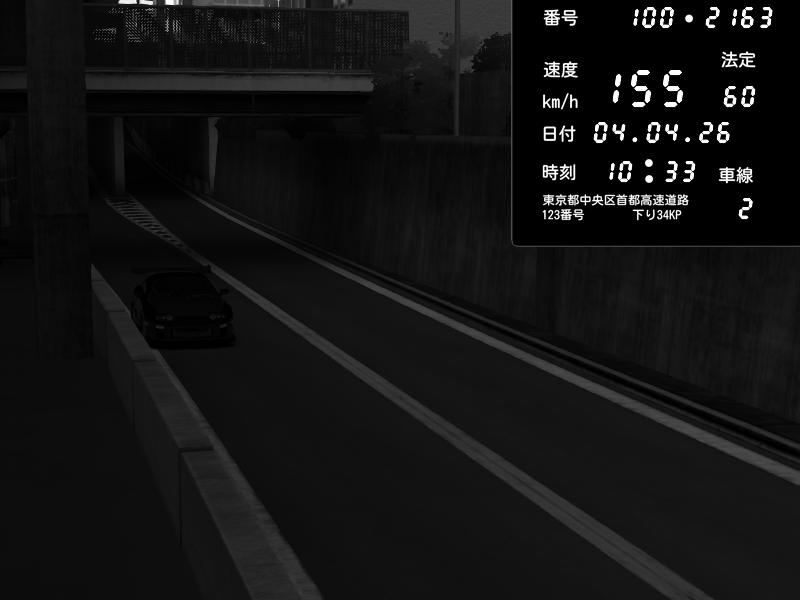 | 2026/04/03 22:29 | C1内回り 京橋 | 190 / 60 km/h | Charlie2 | Honda S2000 (AP2 - Legendary) | CAPTURE |