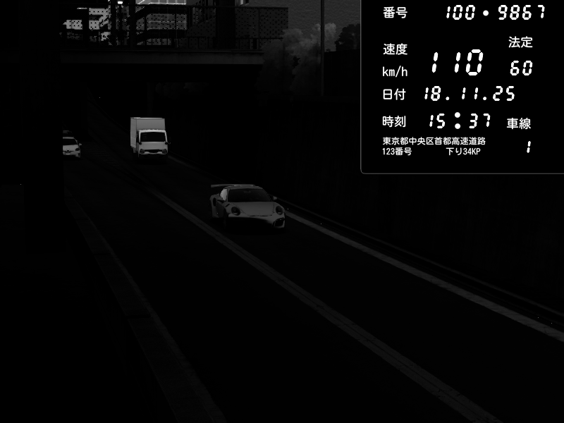 | 2025/11/18 15:37 | C1内回り 京橋 | 110 / 60 km/h | Rura | Porsche 911 GT3 RS | CAPTURE |