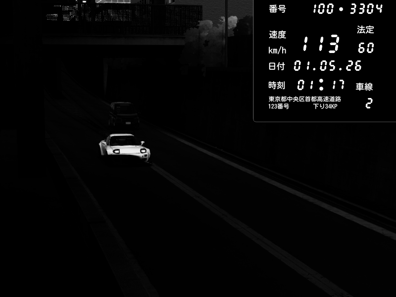 | 2026/04/27 22:45 | C1内回り 京橋 | 178 / 60 km/h | Dora-Ichi | Honda S2000 (AP2 - Legendary) | CAPTURE |