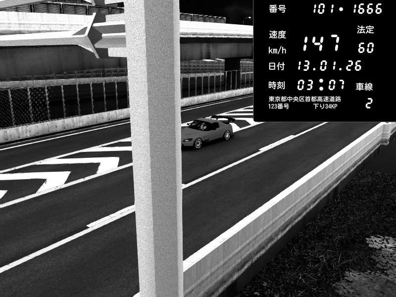 | 2026/01/12 20:53 | C1内回り 竹橋JCT | 170 / 60 km/h | MotorGeeks #5 | Honda S2000 (AP2 - Legendary) | CAPTURE |