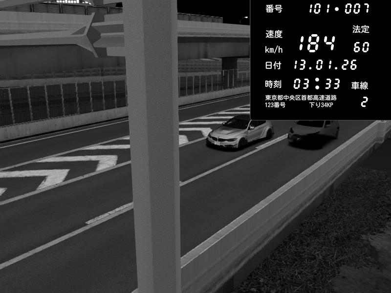 | 2026/01/13 03:33 | C1内回り 竹橋JCT | 184 / 60 km/h | GLACK | BMW M4 crash.Sp Varis Widebody | CAPTURE |