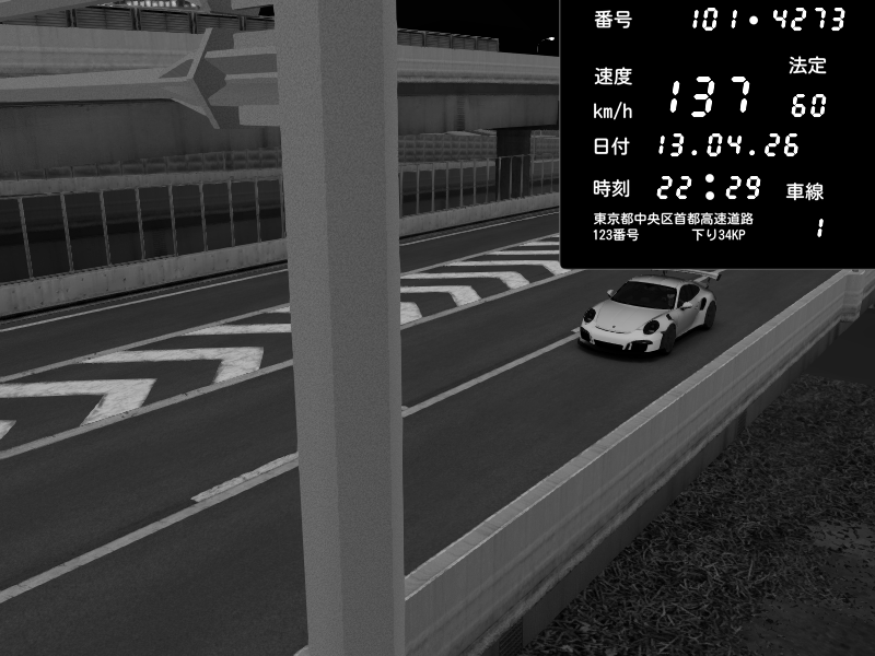 | 2026/04/13 22:29 | C1内回り 竹橋JCT | 137 / 60 km/h | CITRA | Porsche 911 GT3 RS | CAPTURE |