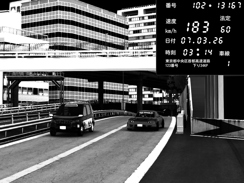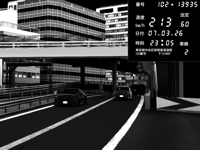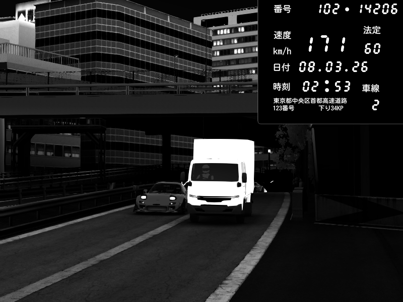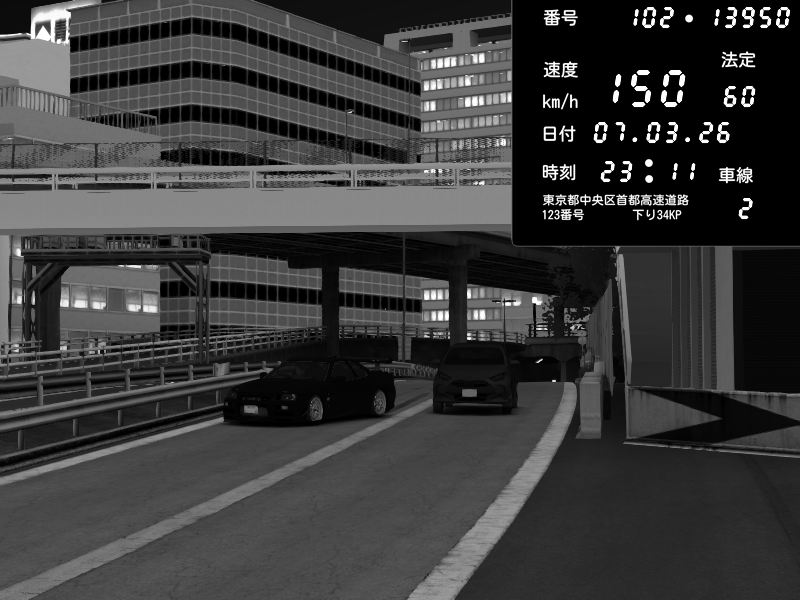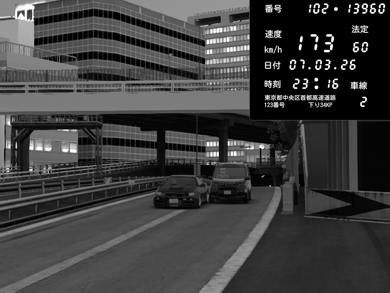 | 2026/03/07 23:09 | C1外回り 新富町 | 207 / 60 km/h | Raven | Pit Road M - Mitsubishi GTO Twin Turbo | CAPTURE |