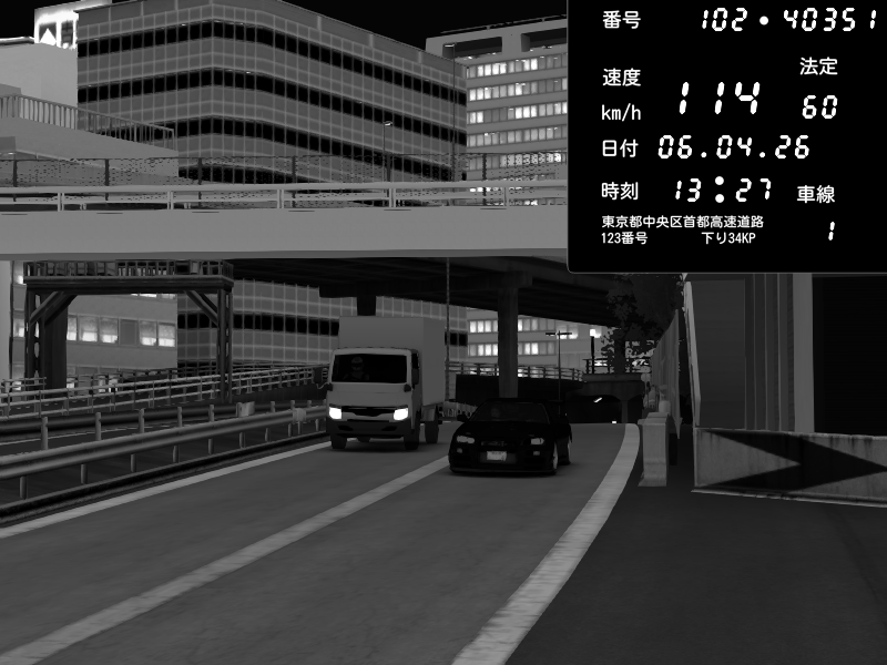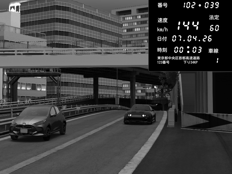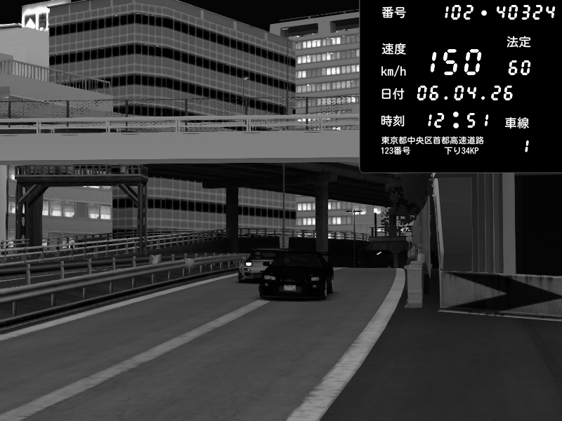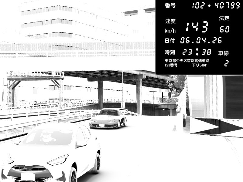 | 2026/04/06 13:43 | C1外回り 新富町 | 146 / 60 km/h | Player | Pit Road M - Mitsubishi GTO Twin Turbo | CAPTURE |