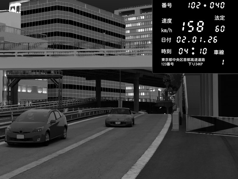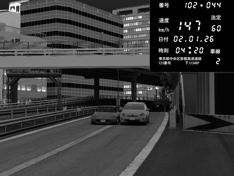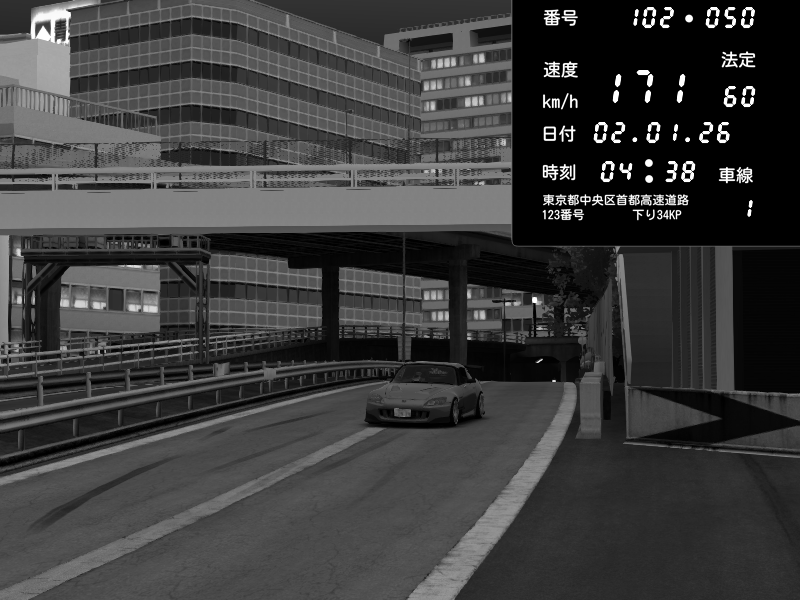 | 2026/01/02 04:10 | C1外回り 新富町 | 126 / 60 km/h | トリはぴ | Honda S2000 (AP2 - Legendary) | CAPTURE |