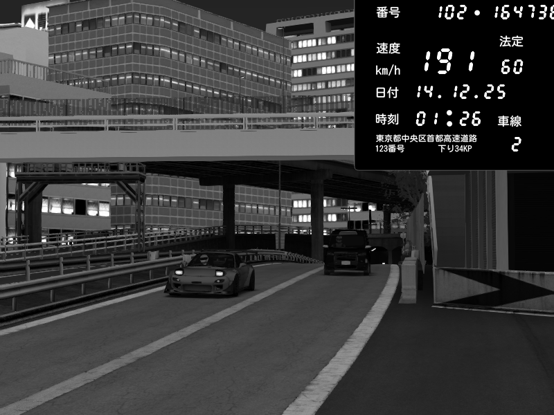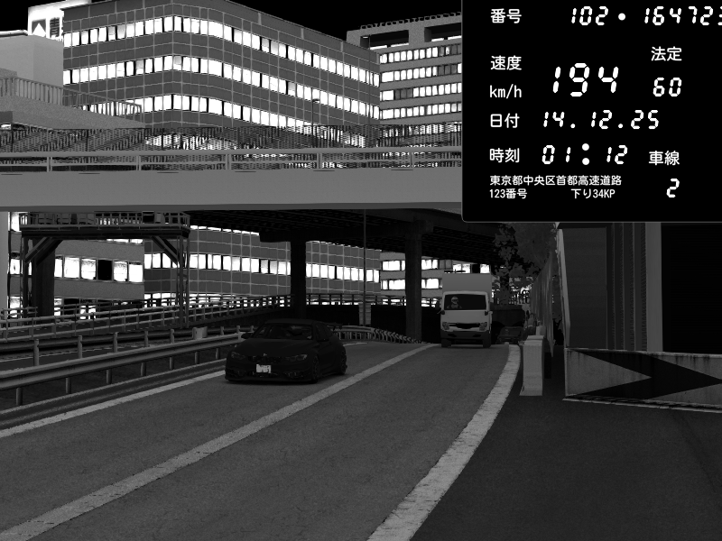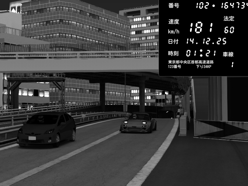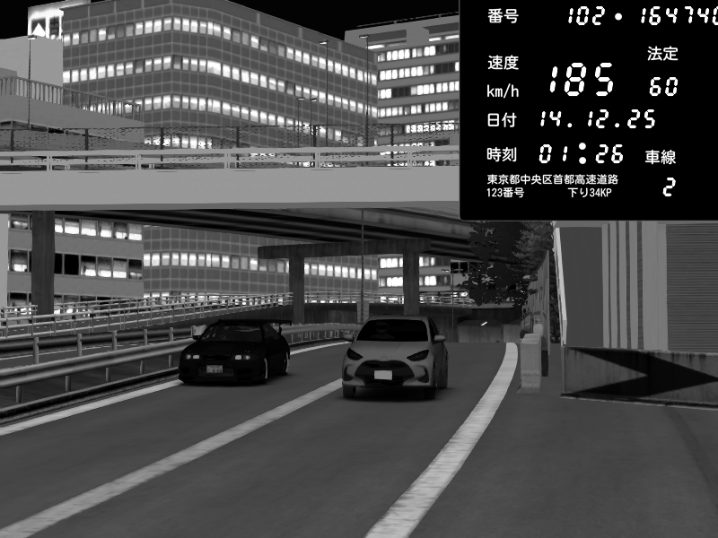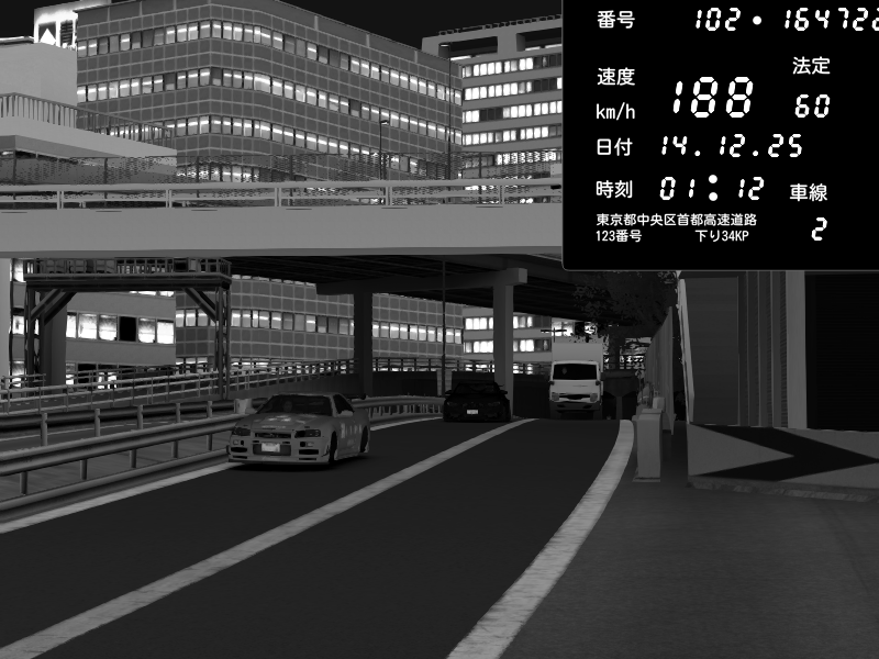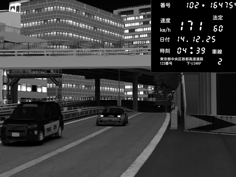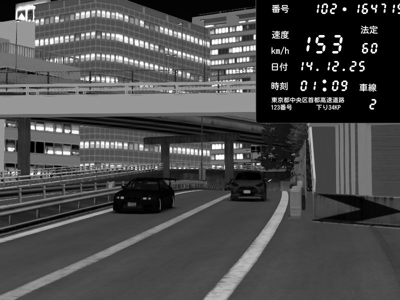 | 2025/12/15 00:14 | C1外回り 新富町 | 179 / 60 km/h | Sebastien Loubar | Nissan GT-R NISMO 2017 | CAPTURE |