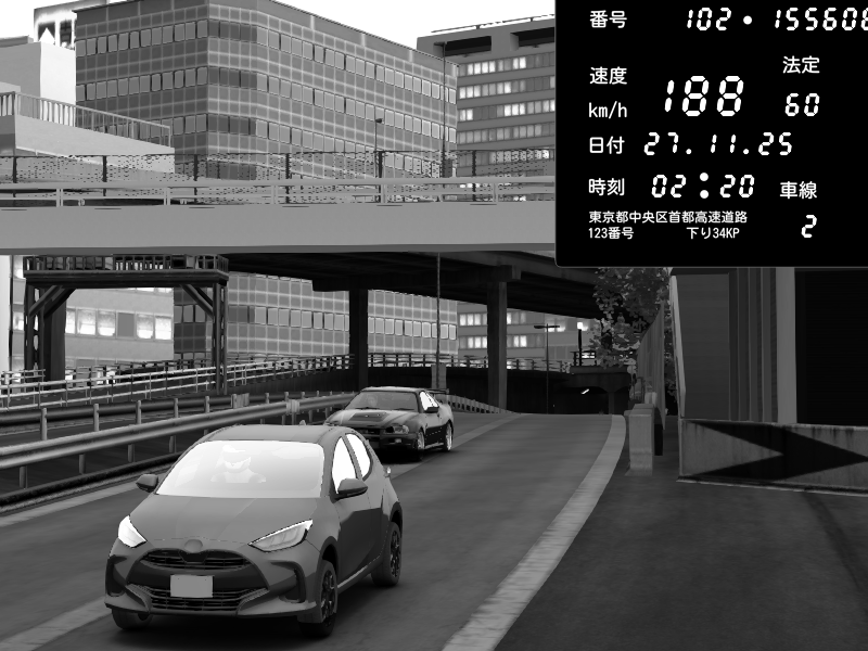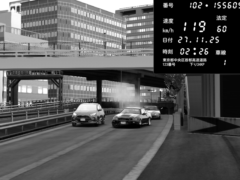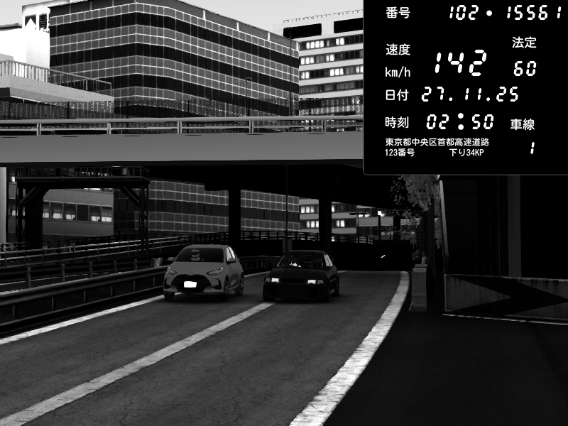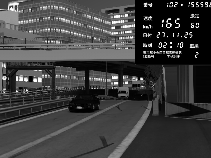 | 2025/11/27 02:05 | C1外回り 新富町 | 173 / 60 km/h | dratec | Nissan Skyline GTR R33 (S3 - Wangan) | CAPTURE |
