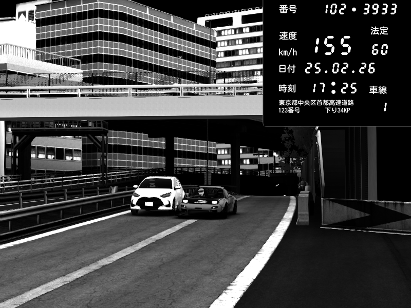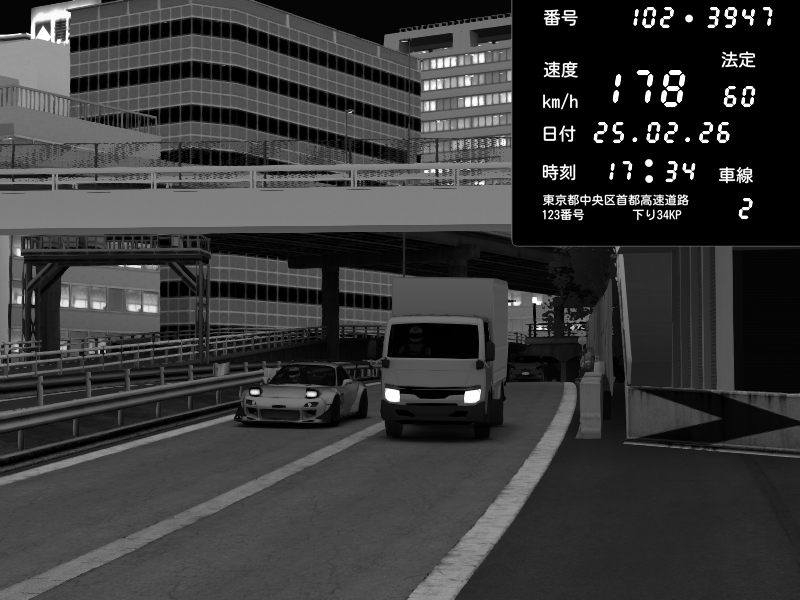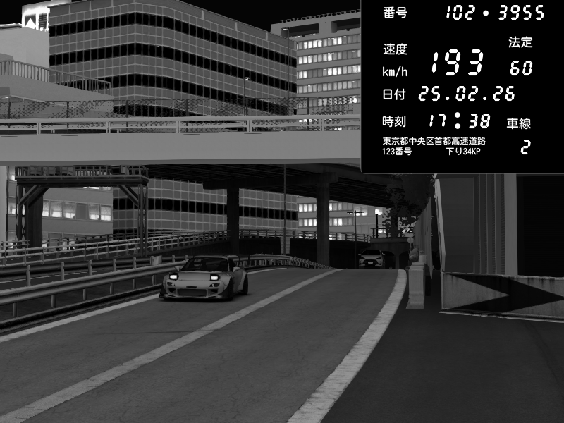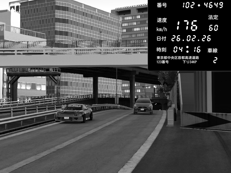 | 2026/02/26 02:35 | C1外回り 新富町 | 100 / 60 km/h | GUGUREKASU | Pit Road M - Mitsubishi GTO Twin Turbo | CAPTURE |