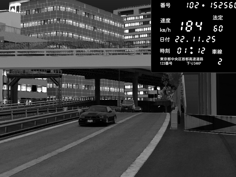 | 2025/11/21 10:58 | C1外回り 新富町 | 174 / 60 km/h | tetu | Nissan Skyline GTR R33 (S3 - Wangan) | CAPTURE |