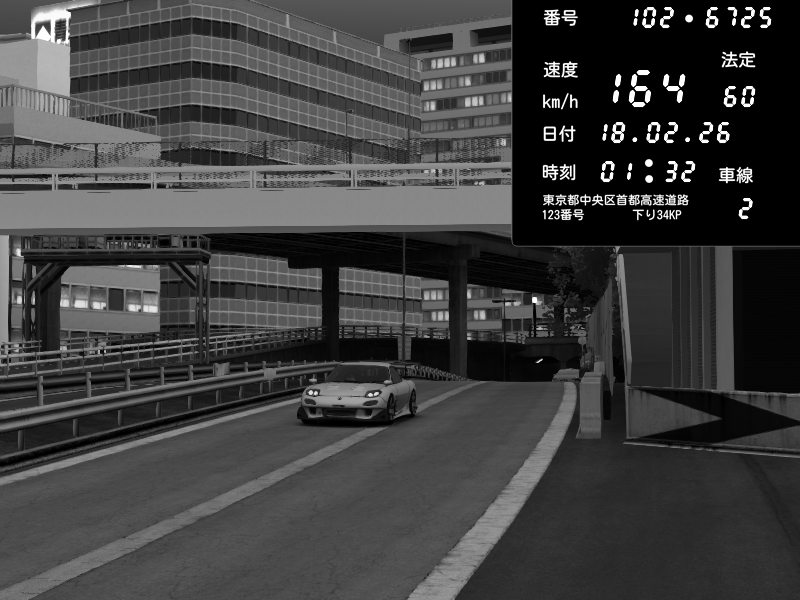 | 2026/02/18 01:32 | C1外回り 新富町 | 164 / 60 km/h | Shachiku508 | Mazda RX-7 FD3S RE Amemiya | CAPTURE |