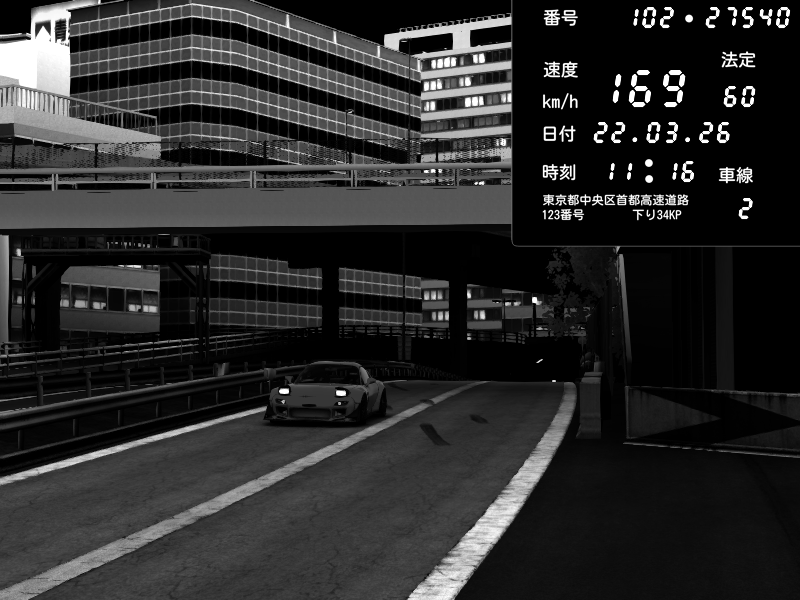 | 2026/03/22 10:35 | C1外回り 新富町 | 159 / 60 km/h | ナイトシフト | Mazda RX-7 FD3S FEED Afflux GT3 | CAPTURE |