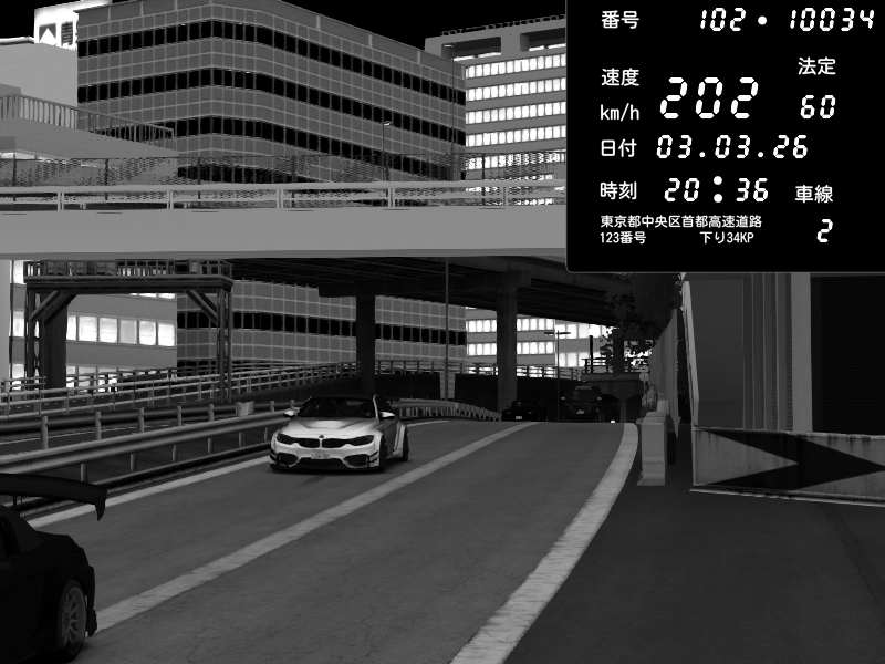 | 2026/03/03 20:36 | C1外回り 新富町 | 202 / 60 km/h | 8thsilver | BMW M4 crash.Sp Varis Widebody | CAPTURE |