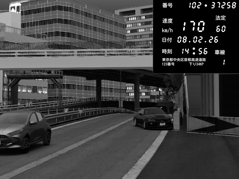 | 2026/02/08 14:56 | C1外回り 新富町 | 170 / 60 km/h | HIGHEST | Nissan Skyline GT-R R34 Nismo Omori Factory S1 | CAPTURE |