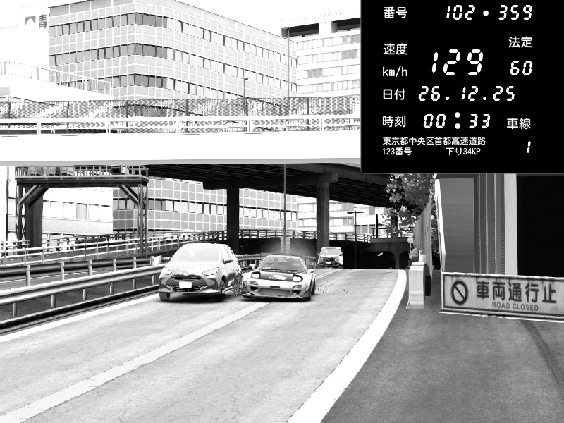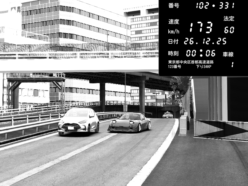 | 2025/12/26 00:35 | C1外回り 新富町 | 167 / 60 km/h | Haydn | Mazda RX-7 FD3S RE Amemiya | CAPTURE |