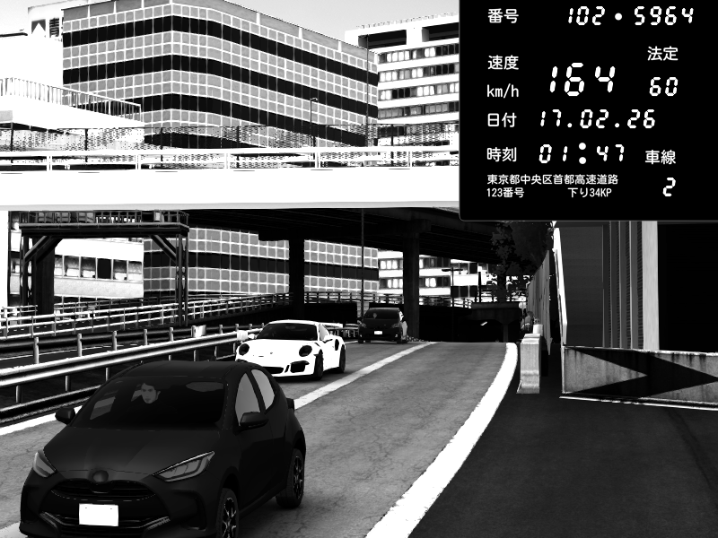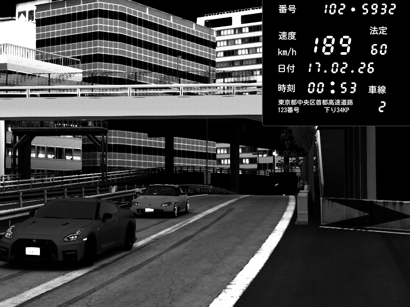| 2026/02/17 00:57 | C1外回り 新富町 | 183 / 60 km/h | クロちゃん | Nissan GT-R NISMO 2017 | CAPTURE |