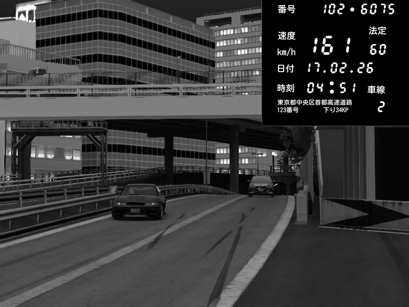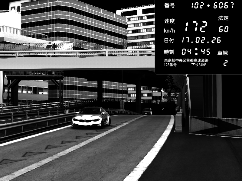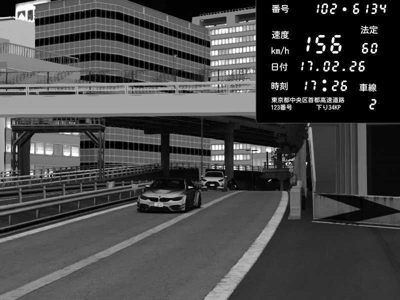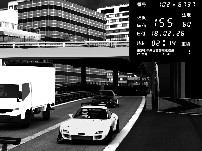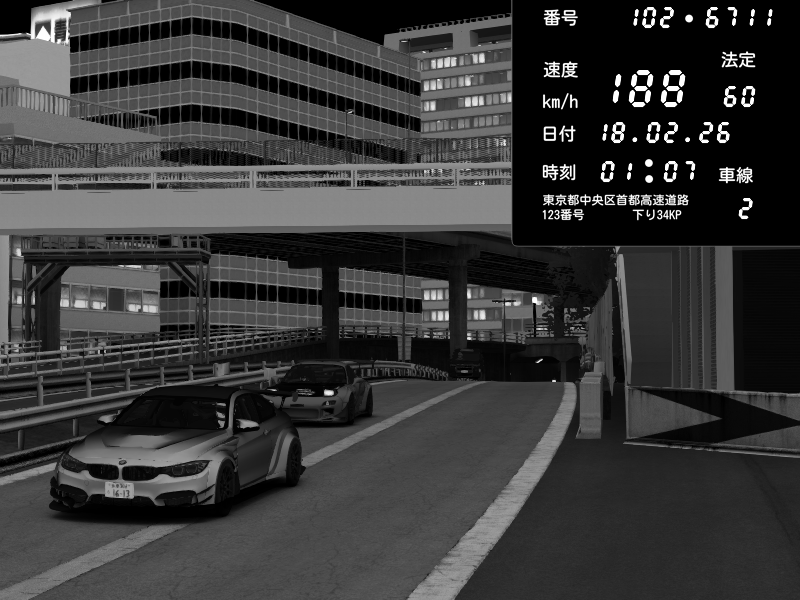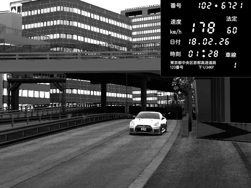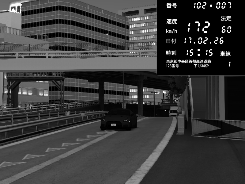 | 2026/02/18 01:48 | C1外回り 新富町 | 149 / 60 km/h | Player | Nissan GT-R NISMO 2017 | CAPTURE |