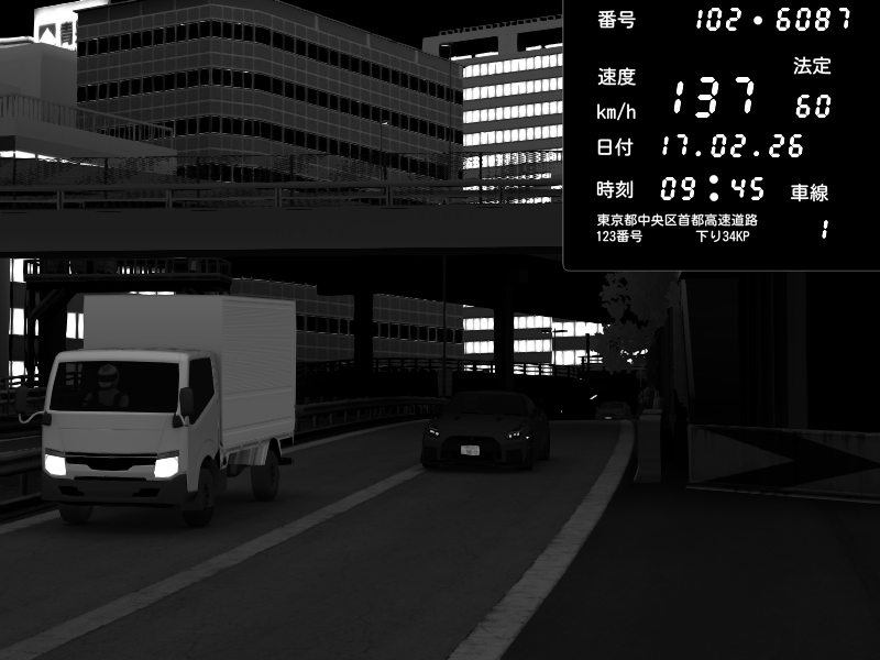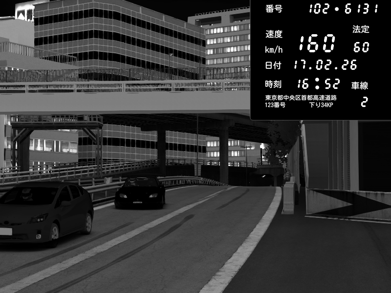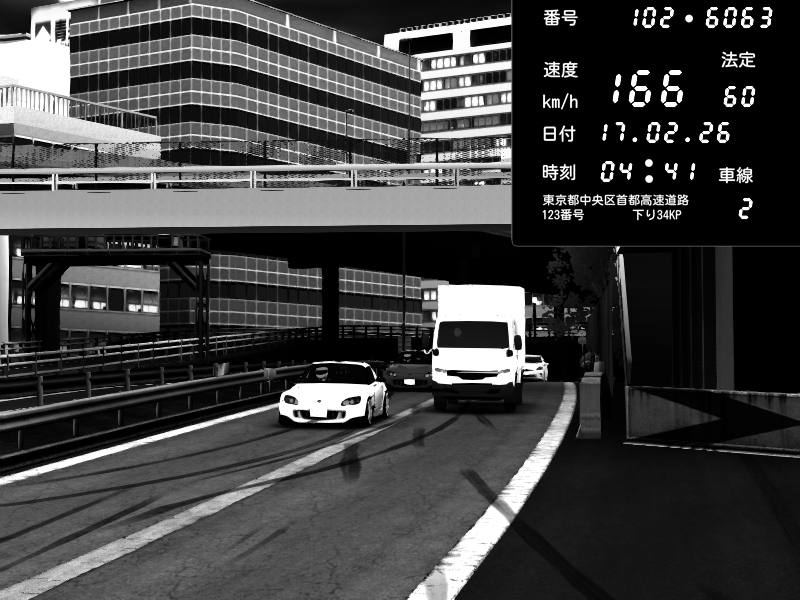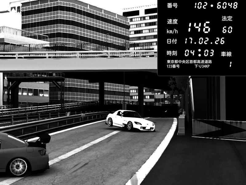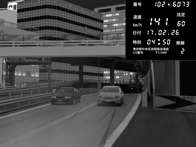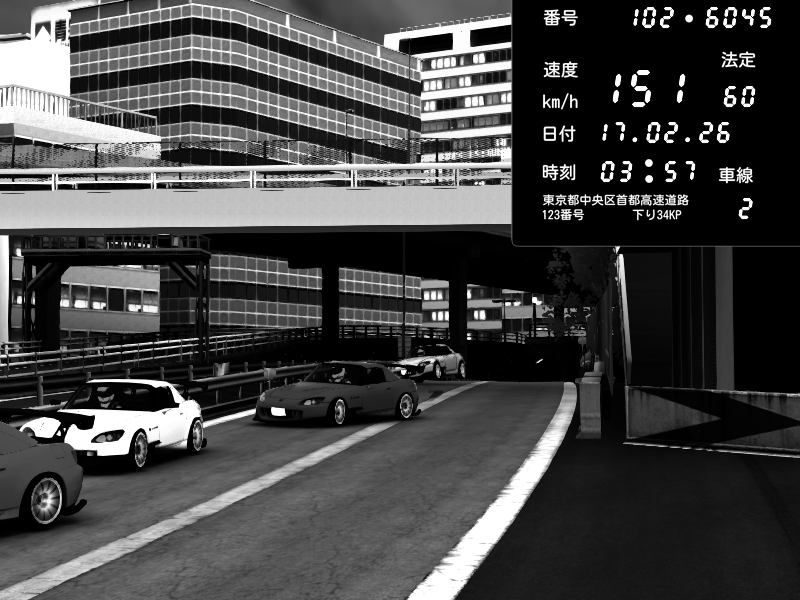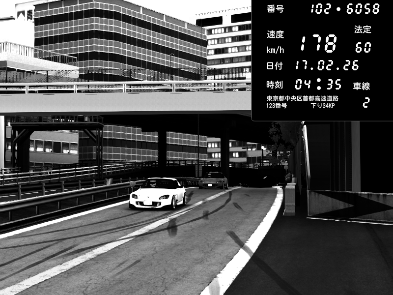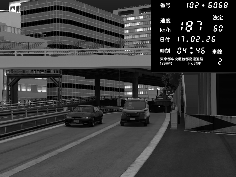 | 2026/02/18 01:48 | C1外回り 新富町 | 149 / 60 km/h | Player | Nissan GT-R NISMO 2017 | CAPTURE |
