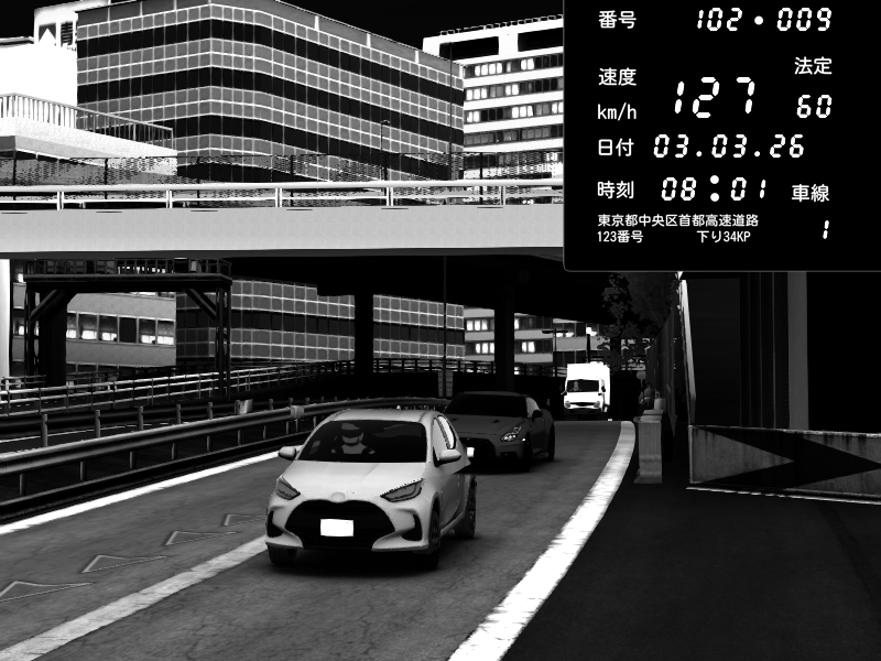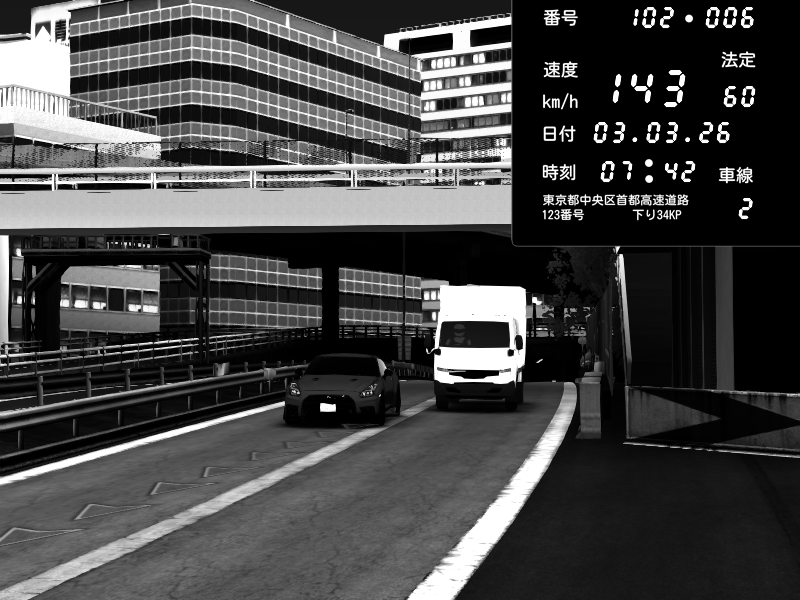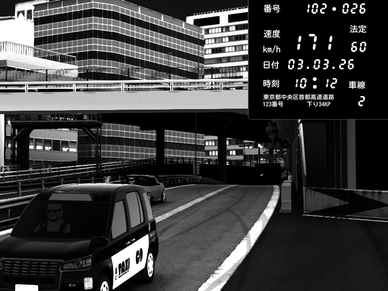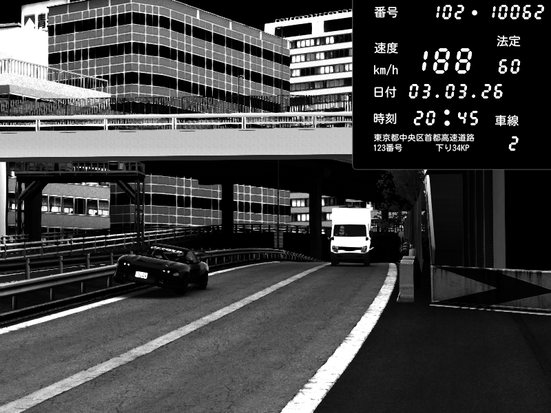 | 2026/03/03 20:45 | C1外回り 新富町 | 188 / 60 km/h | Raven | Pit Road M - Mitsubishi GTO Twin Turbo | CAPTURE |