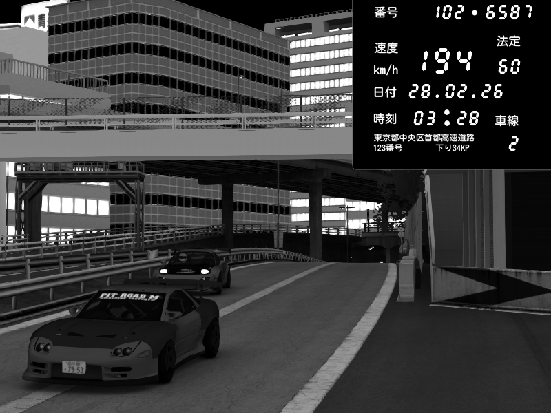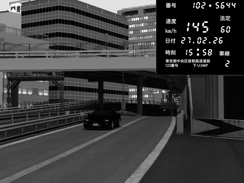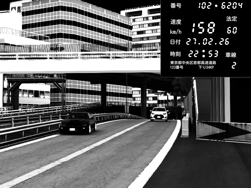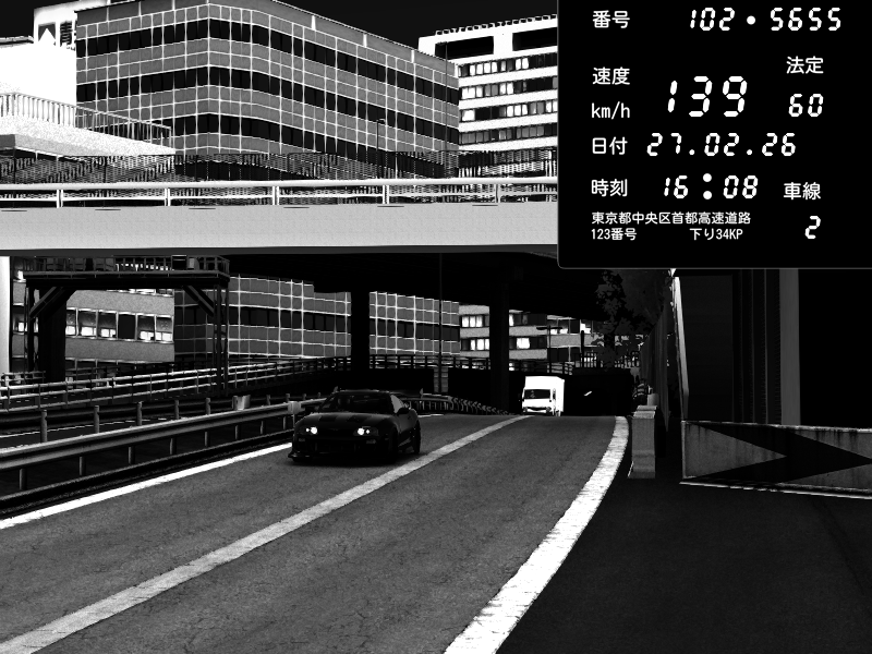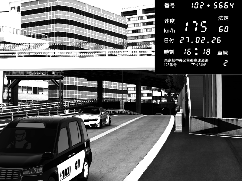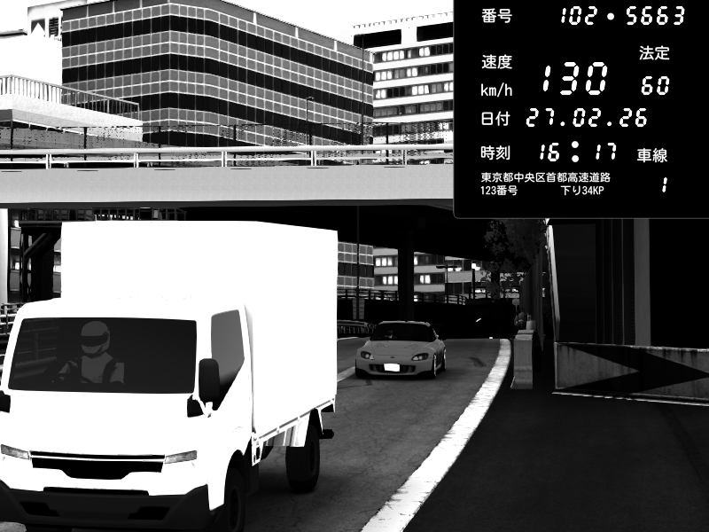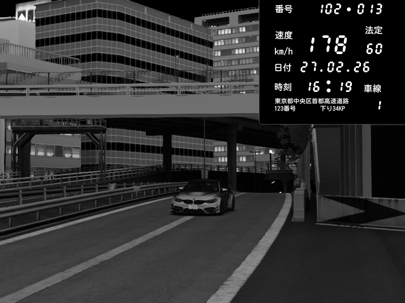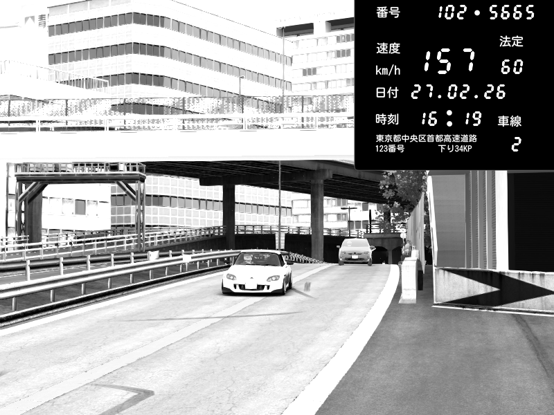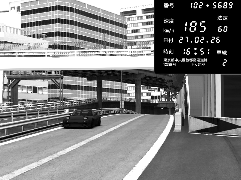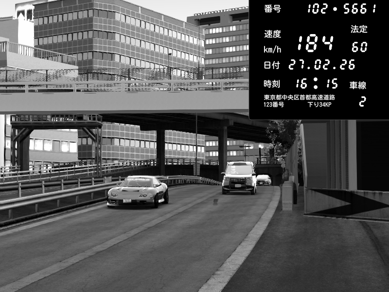 | 2026/02/27 16:15 | C1外回り 新富町 | 159 / 60 km/h | SHOW5 | Pit Road M - Mitsubishi GTO Twin Turbo | CAPTURE |