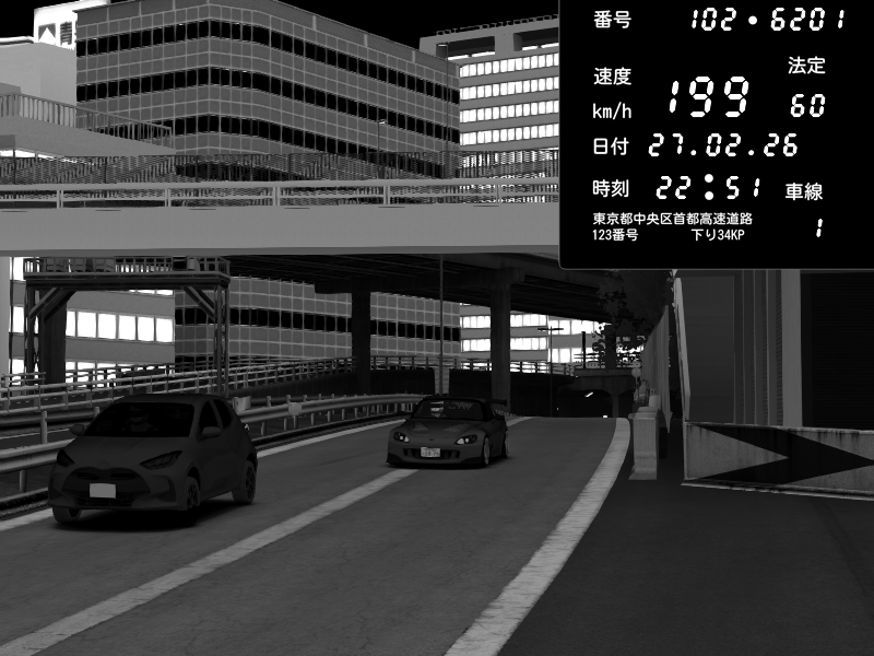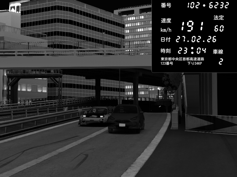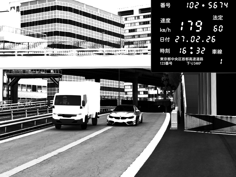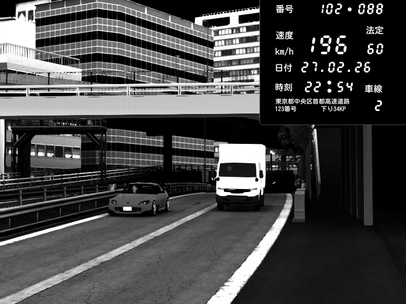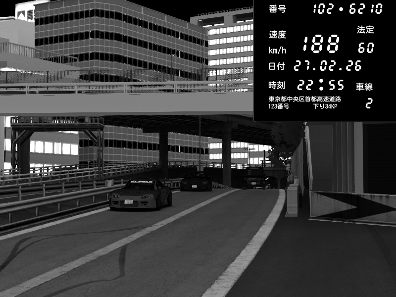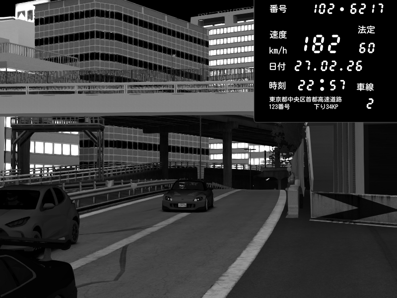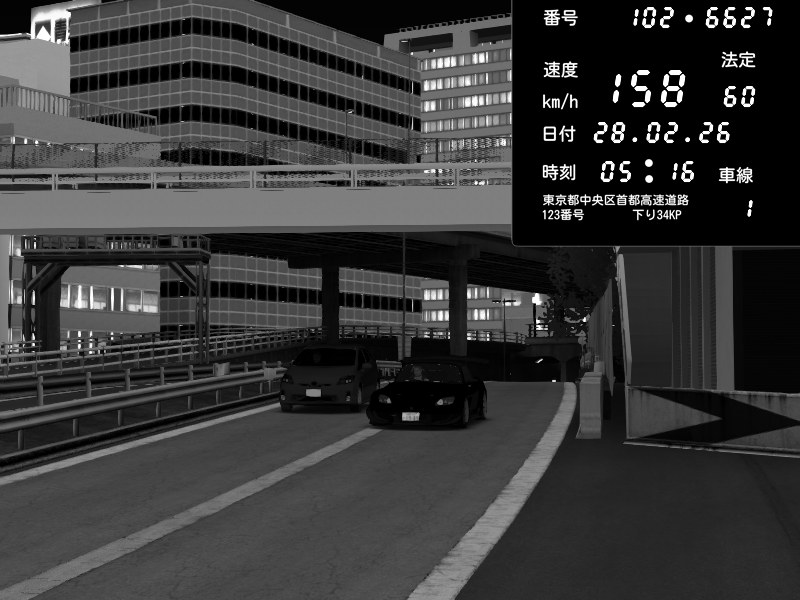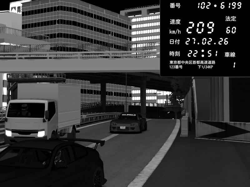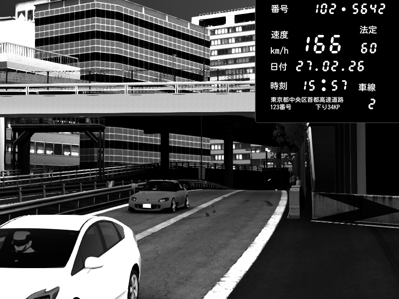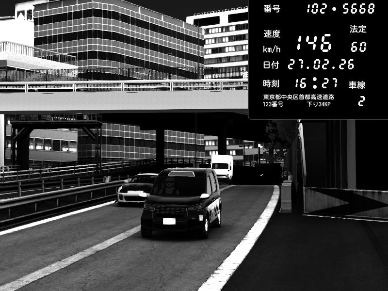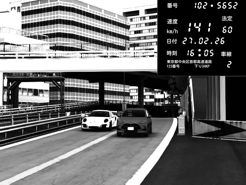 | 2026/02/27 16:15 | C1外回り 新富町 | 159 / 60 km/h | SHOW5 | Pit Road M - Mitsubishi GTO Twin Turbo | CAPTURE |