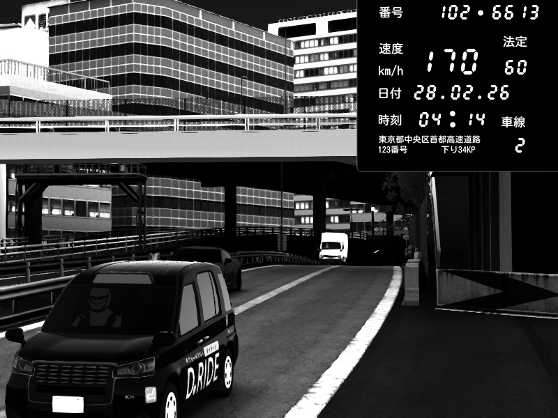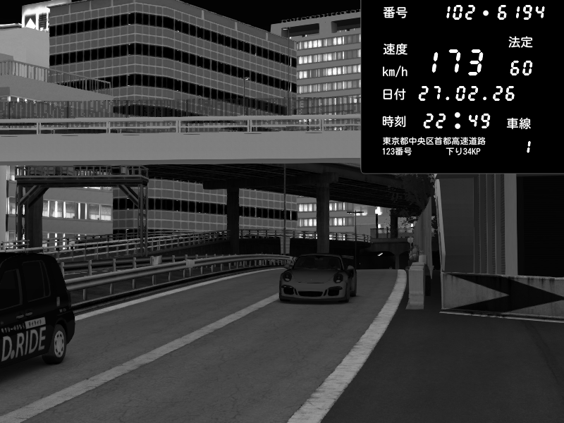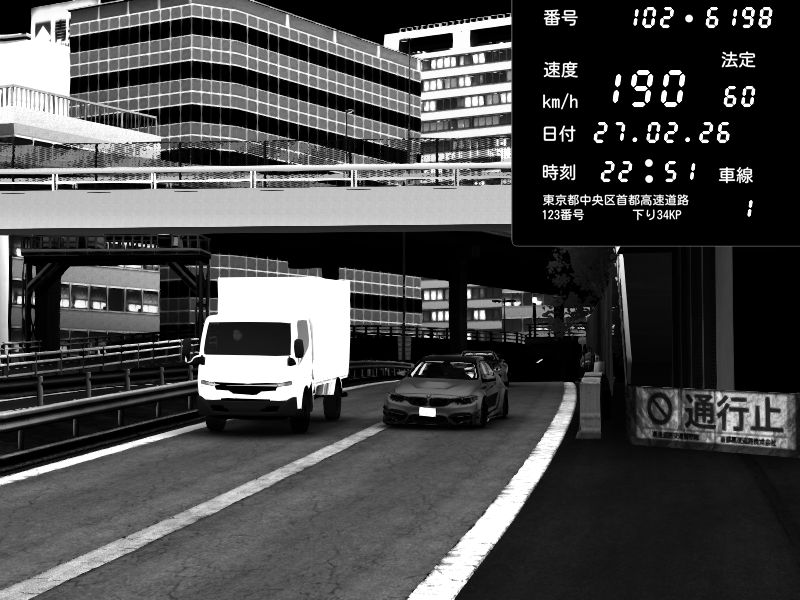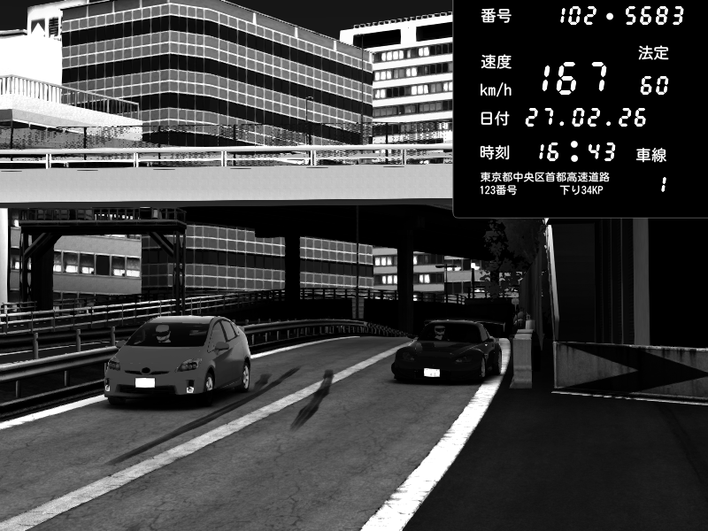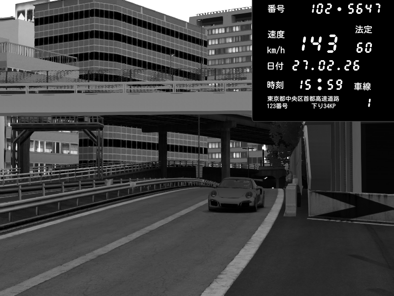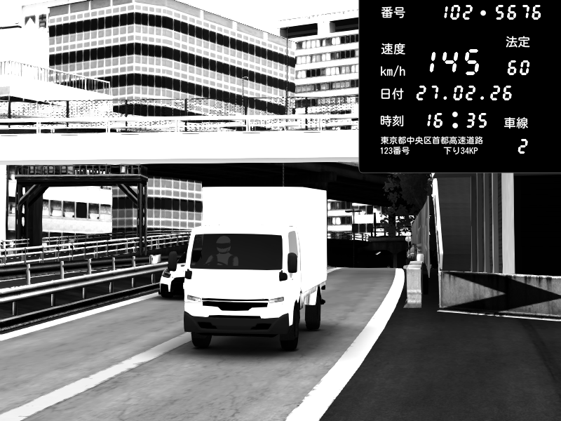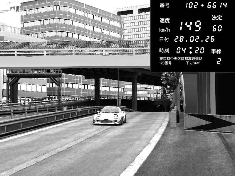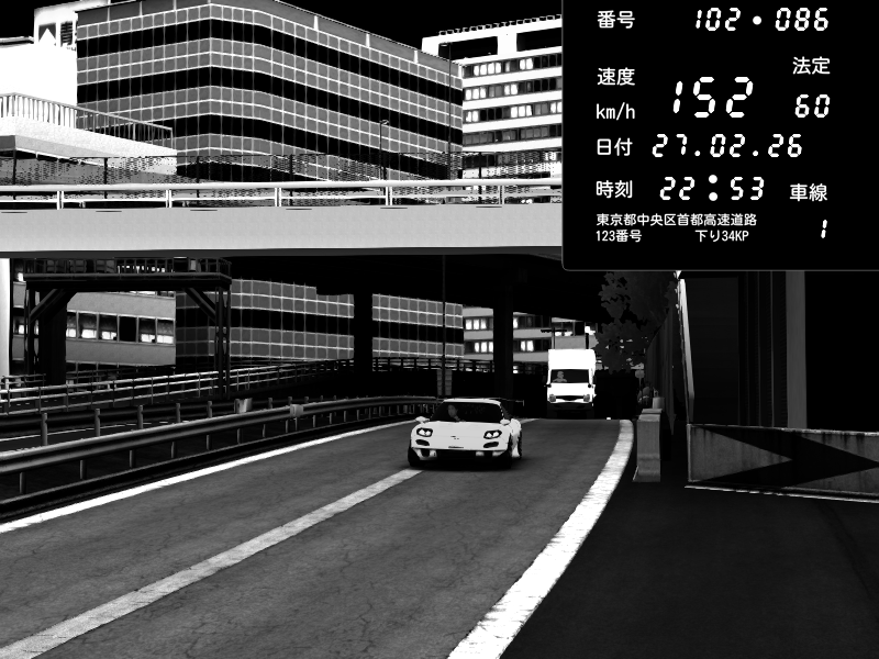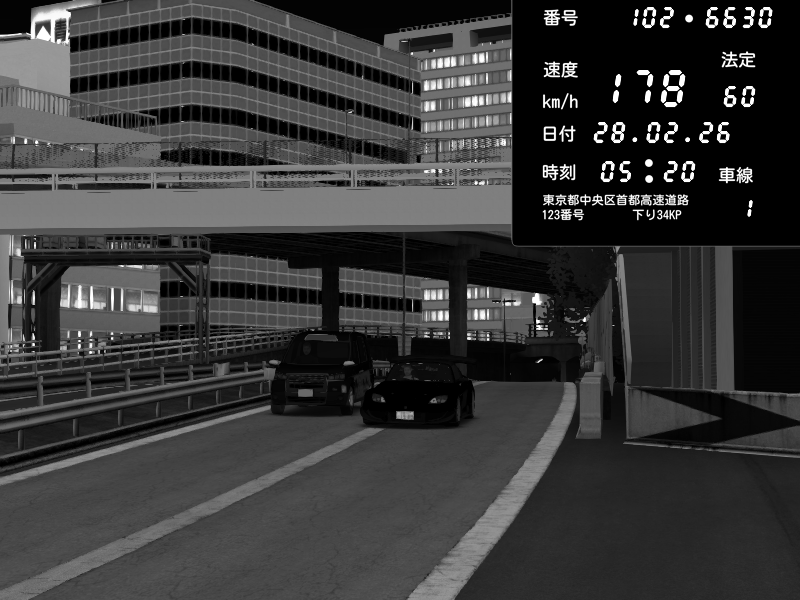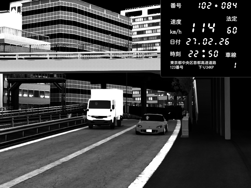 | 2026/02/27 16:15 | C1外回り 新富町 | 159 / 60 km/h | SHOW5 | Pit Road M - Mitsubishi GTO Twin Turbo | CAPTURE |