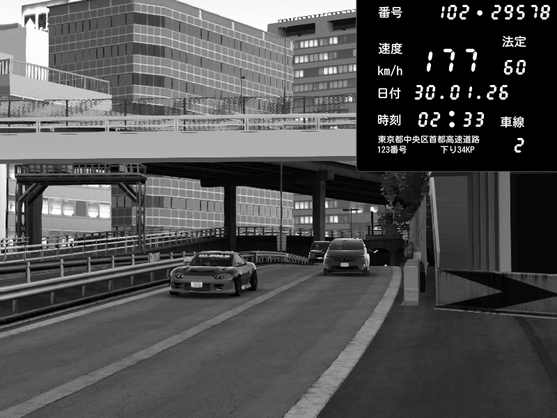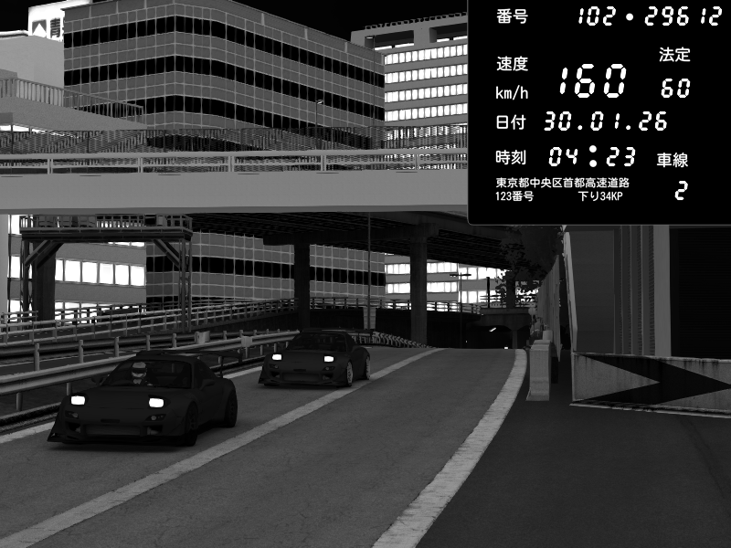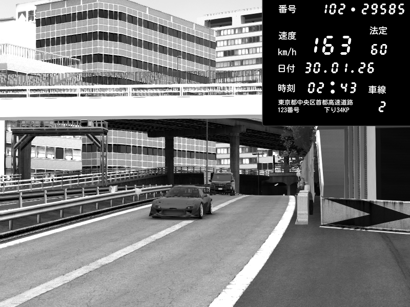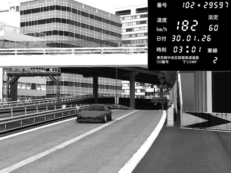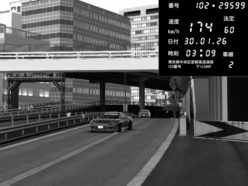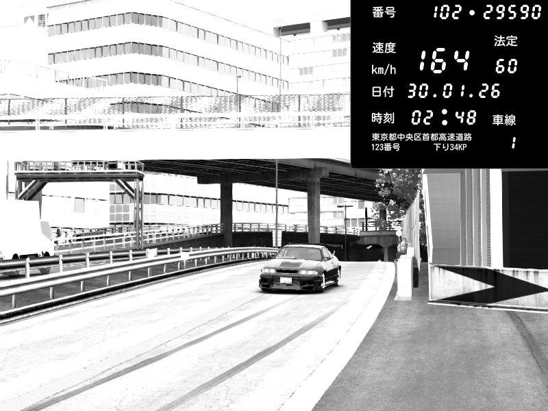 | 2026/01/30 03:01 | C1外回り 新富町 | 102 / 60 km/h | SHOW5 | Nissan Skyline GTR R33 (S3 - Wangan) | CAPTURE |