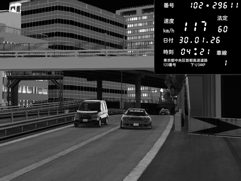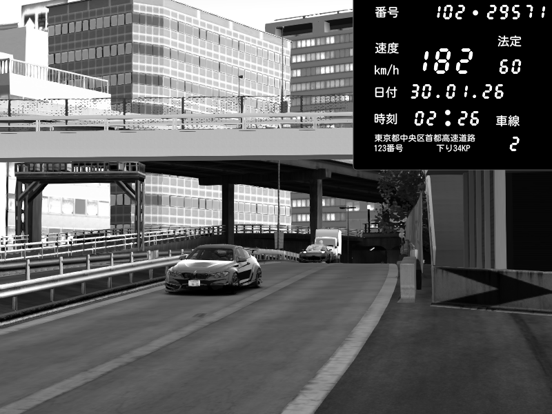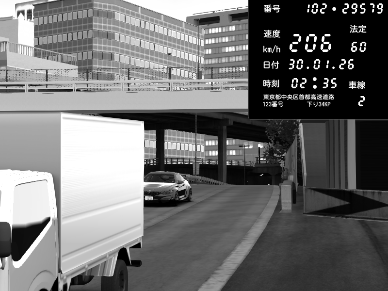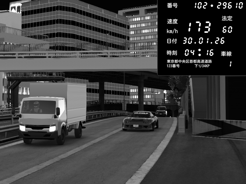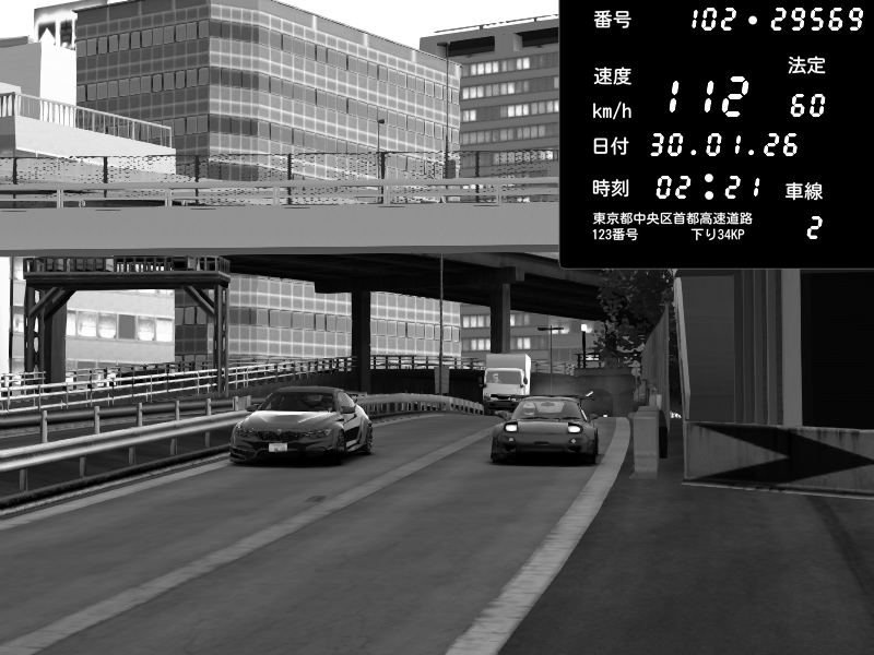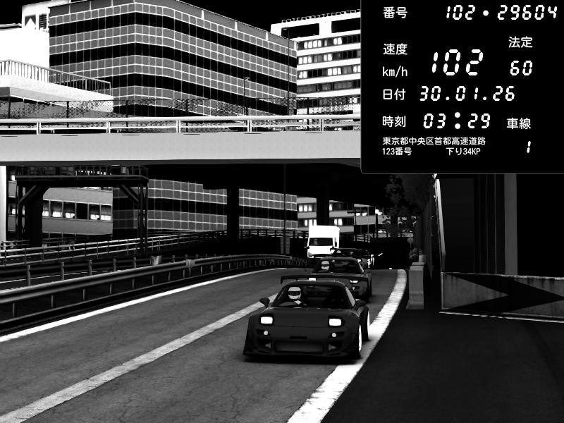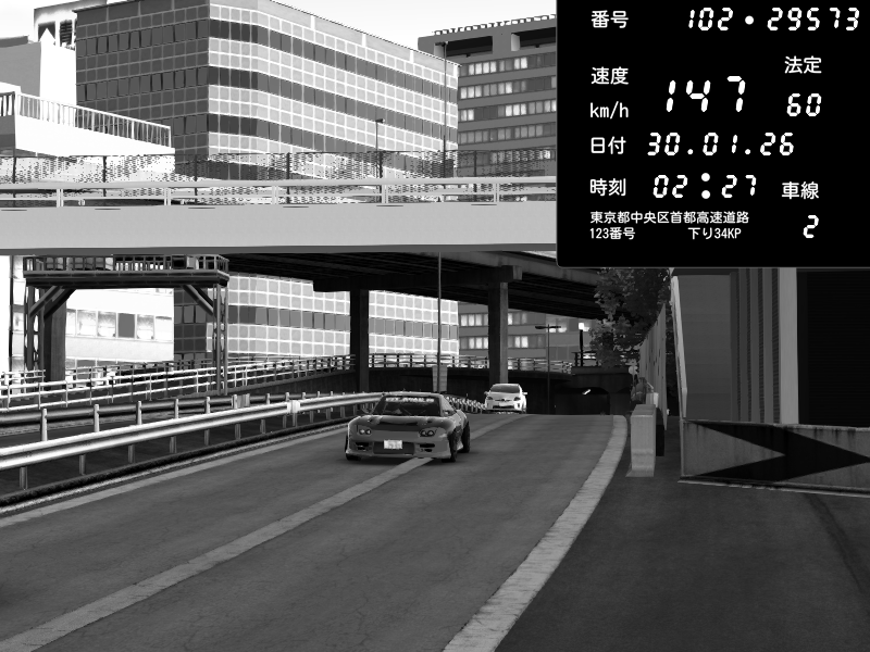 | 2026/01/30 03:01 | C1外回り 新富町 | 102 / 60 km/h | SHOW5 | Nissan Skyline GTR R33 (S3 - Wangan) | CAPTURE |
