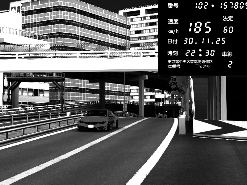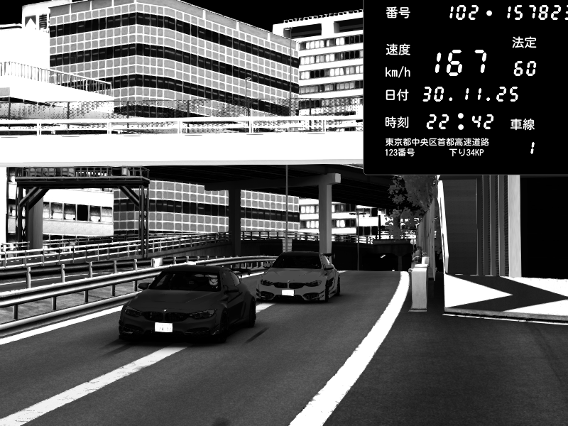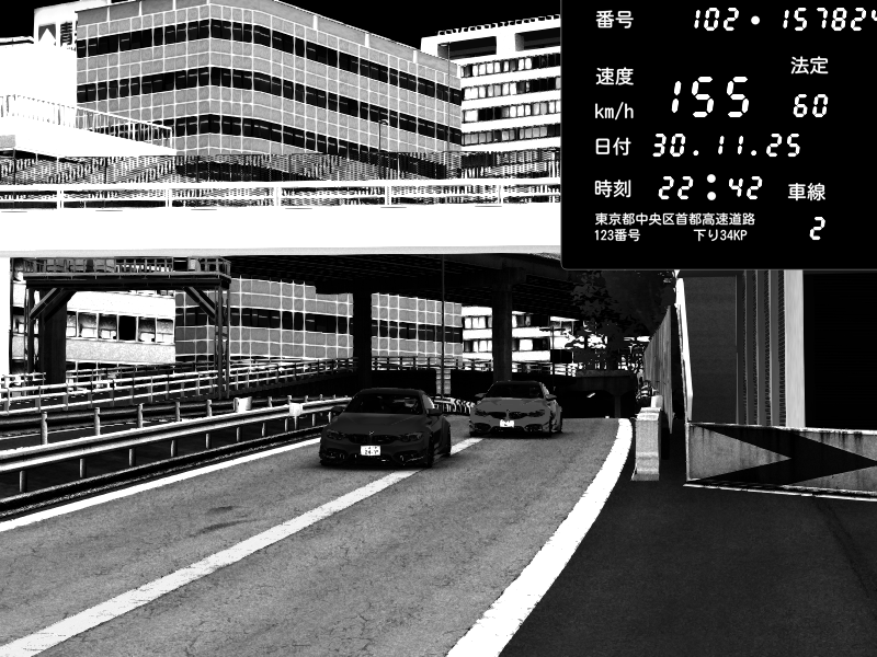 | 2025/11/30 22:48 | C1外回り 新富町 | 107 / 60 km/h | kurositon | BMW M4 crash.Sp Varis Widebody | CAPTURE |