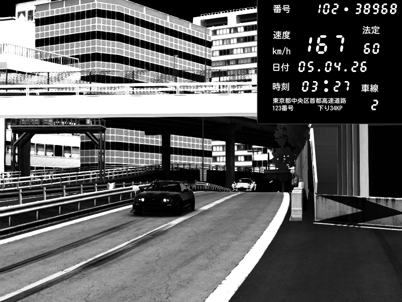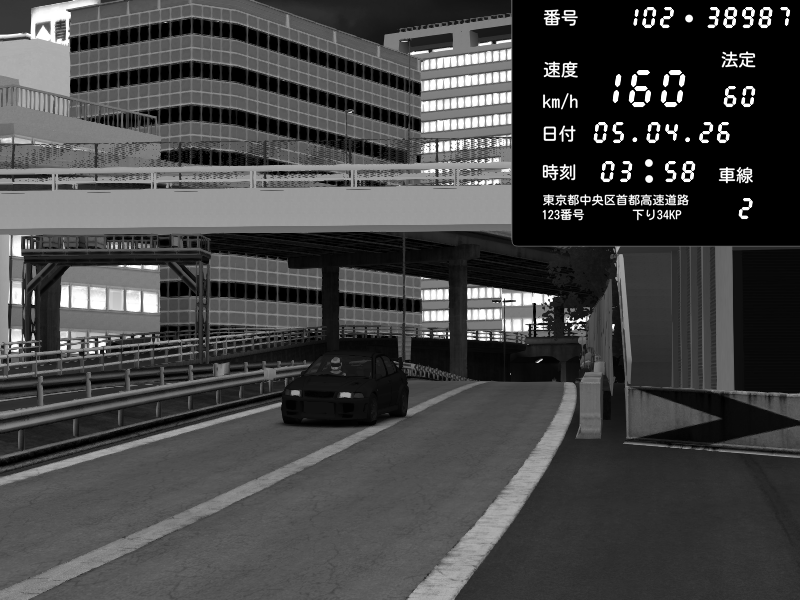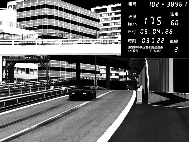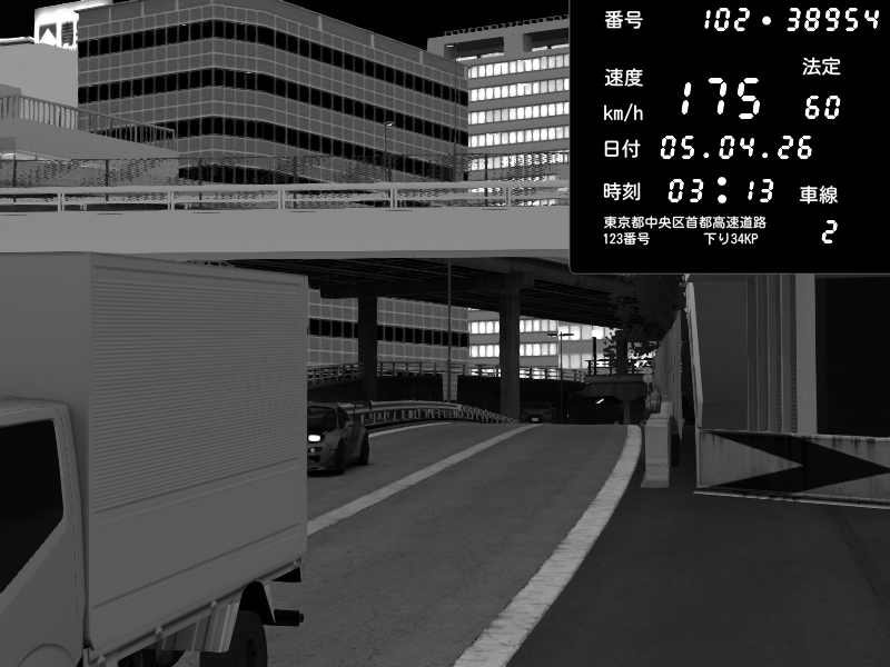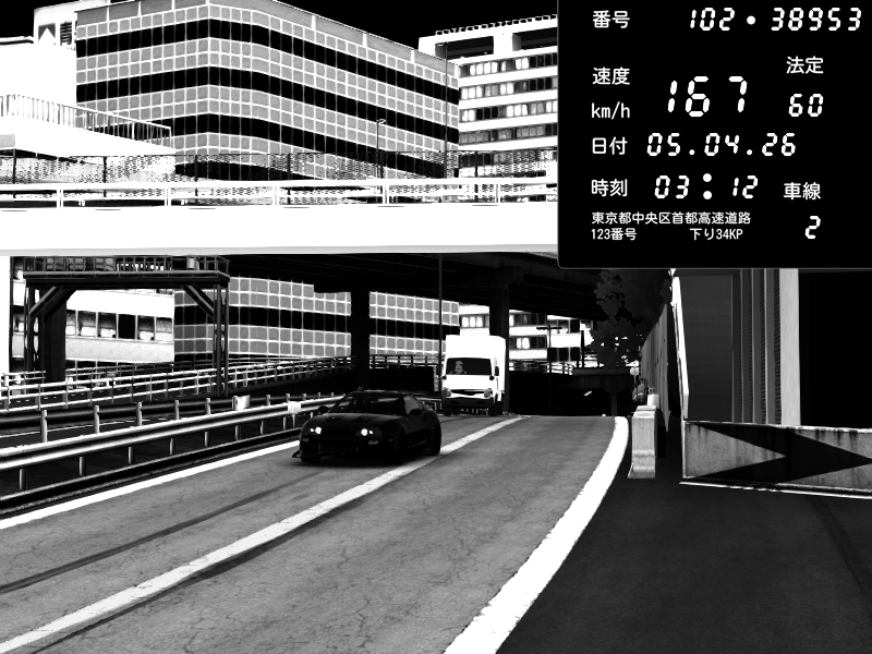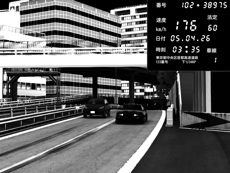 | 2026/04/05 21:49 | C1外回り 新富町 | 168 / 60 km/h | Kurokabe/S.R.C | Nissan Skyline GTR R33 (S3 - Wangan) | CAPTURE |