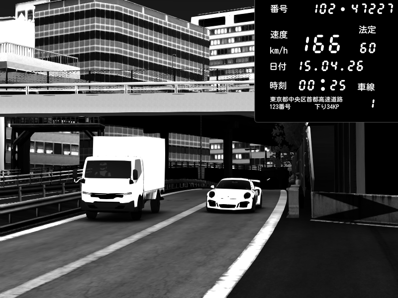 | 2026/04/15 00:25 | C1外回り 新富町 | 166 / 60 km/h | Lenny | Porsche 911 GT3 RS | CAPTURE |
