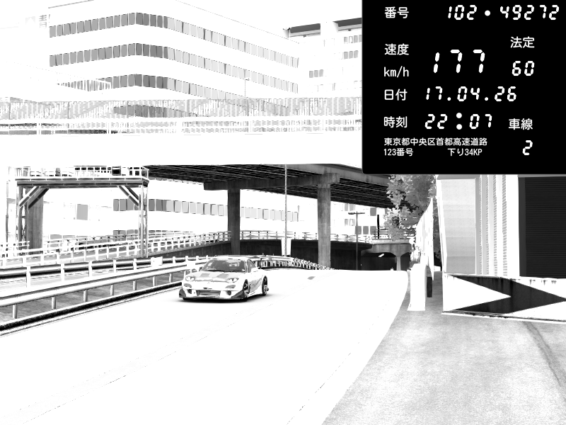 | 2026/04/17 21:57 | C1外回り 新富町 | 168 / 60 km/h | Kurokabe/S.R.C | Nissan Skyline GTR R33 (S3 - Wangan) | CAPTURE |