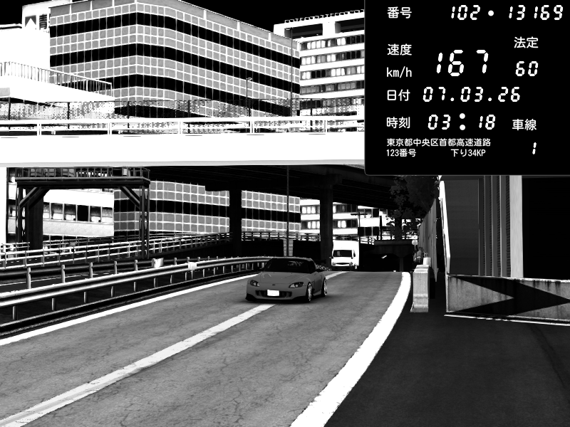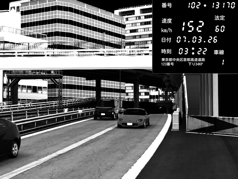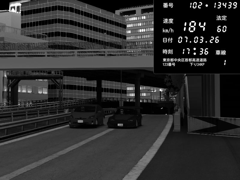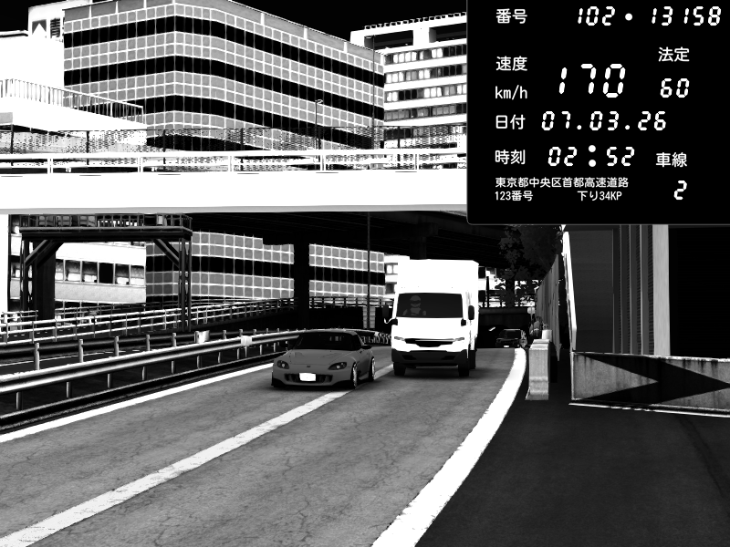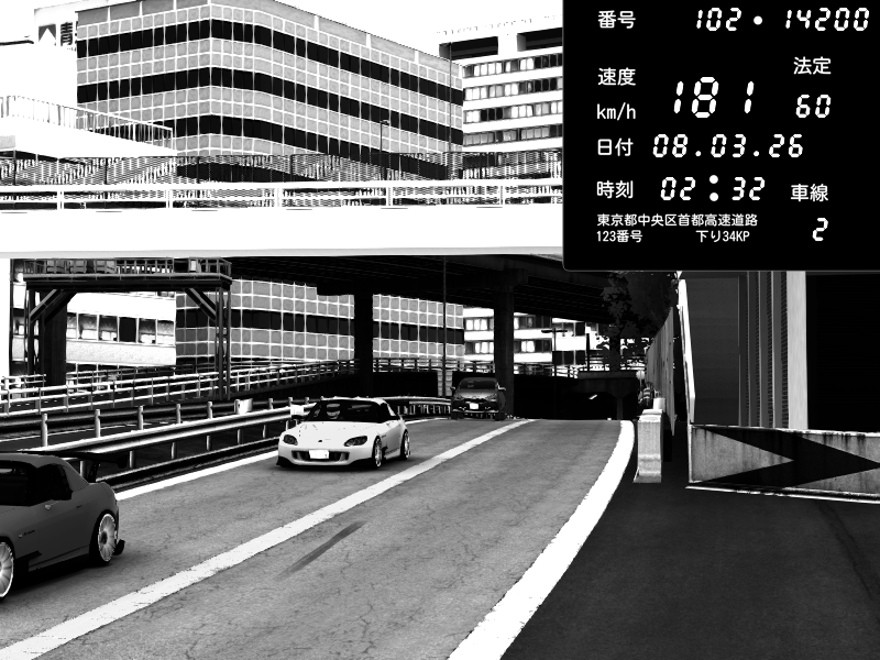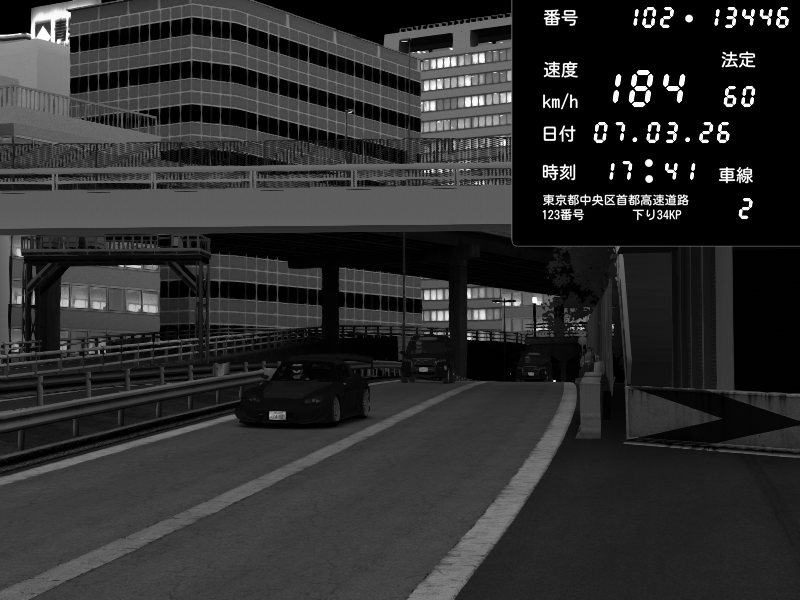 | 2026/03/07 22:53 | C1外回り 新富町 | 183 / 60 km/h | LEVEL3080 | Honda S2000 (AP2 - Legendary) | CAPTURE |