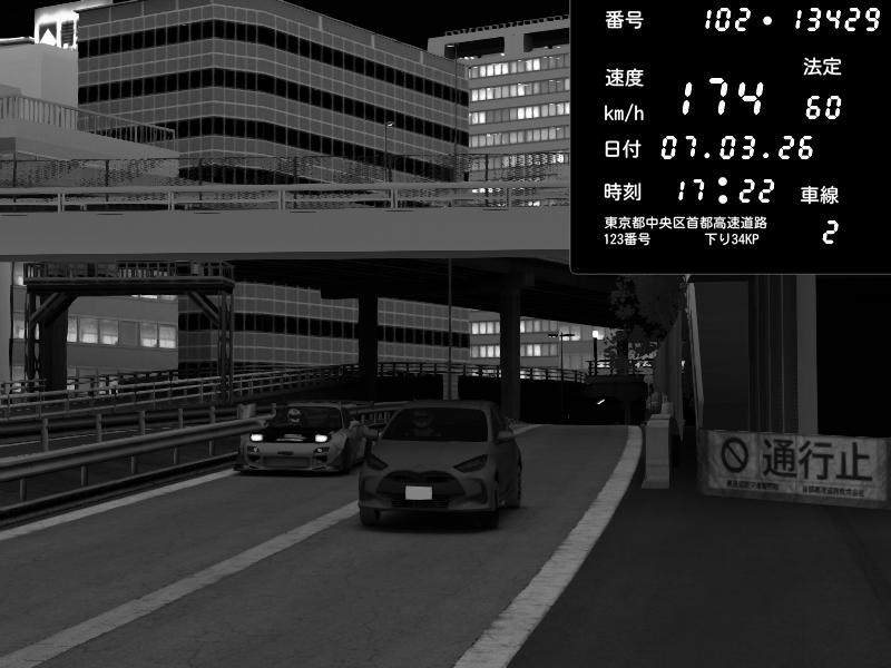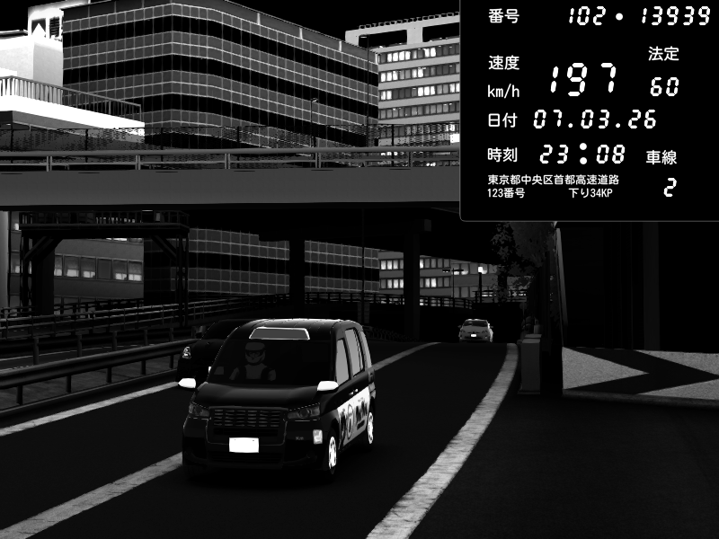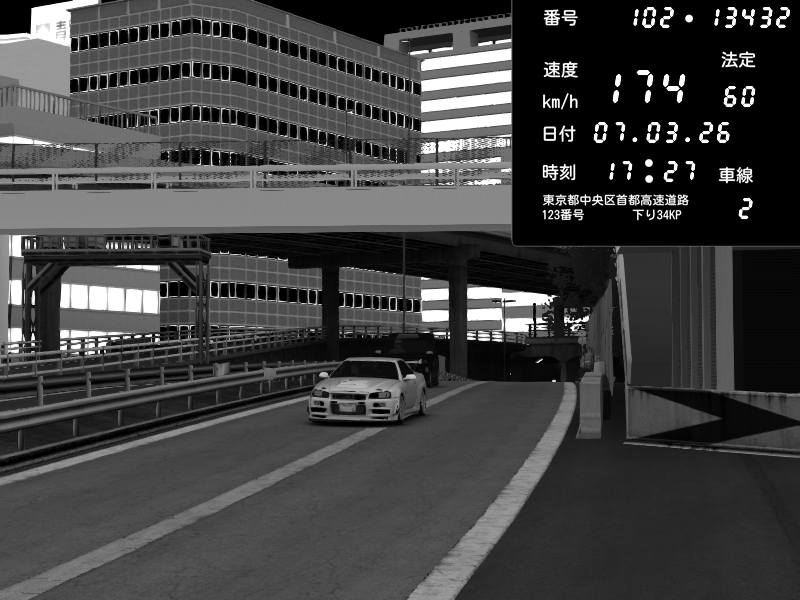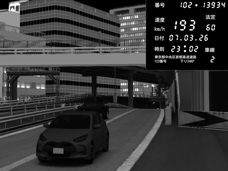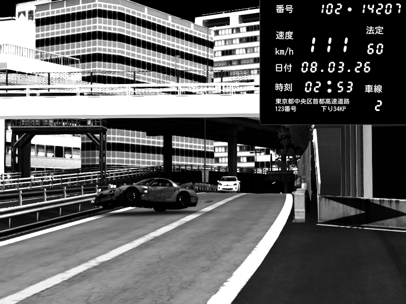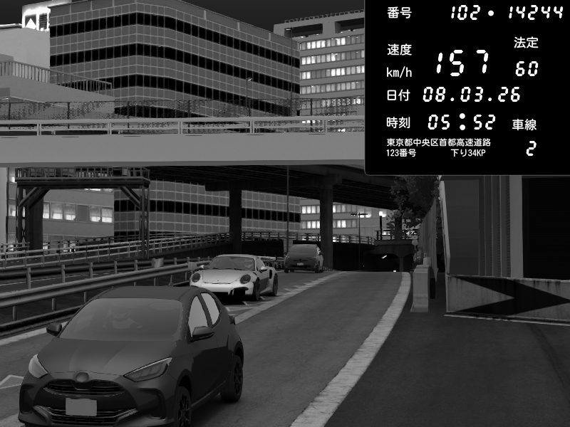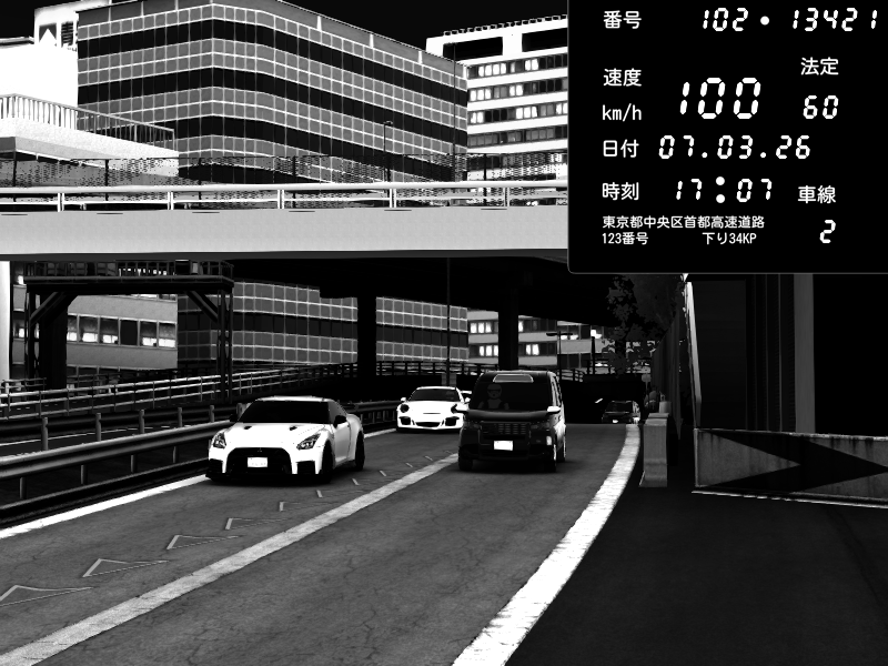 | 2026/03/07 23:08 | C1外回り 新富町 | 197 / 60 km/h | Kurokabe | Nissan GT-R NISMO 2017 | CAPTURE |