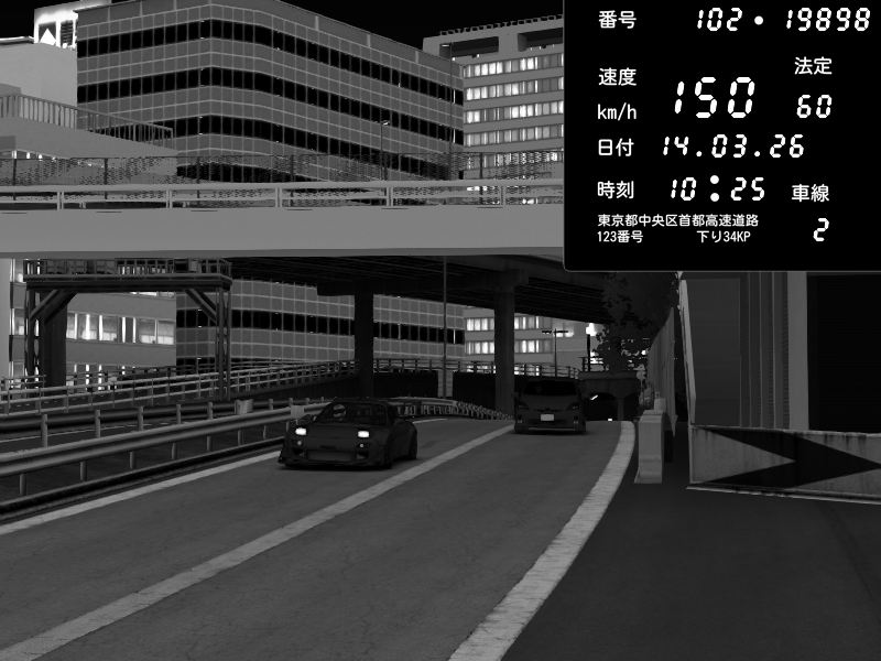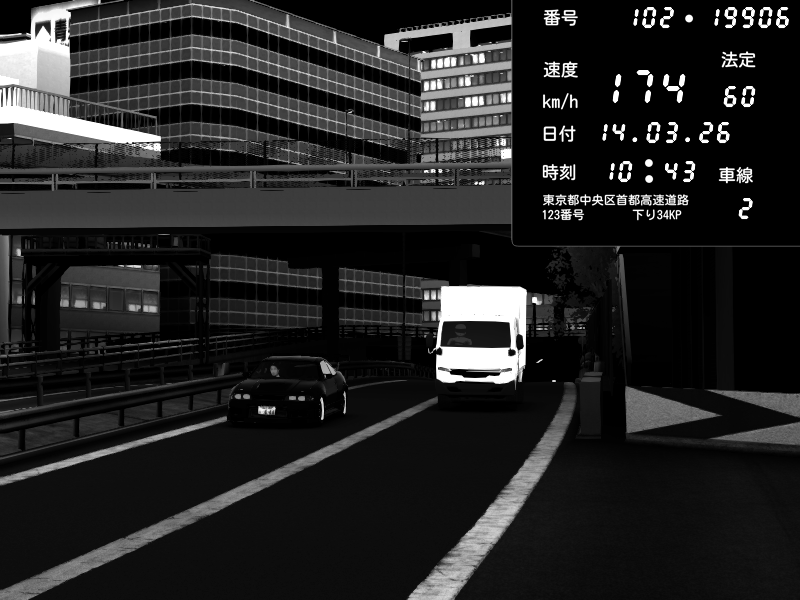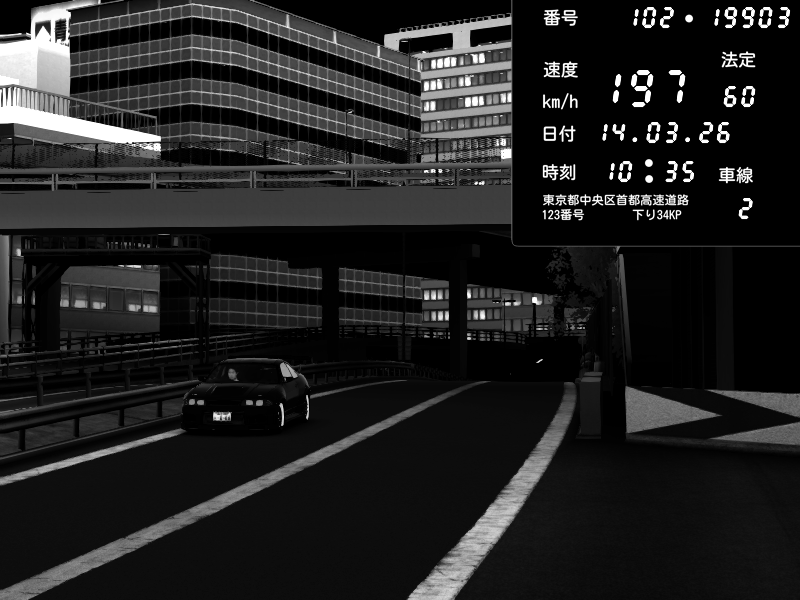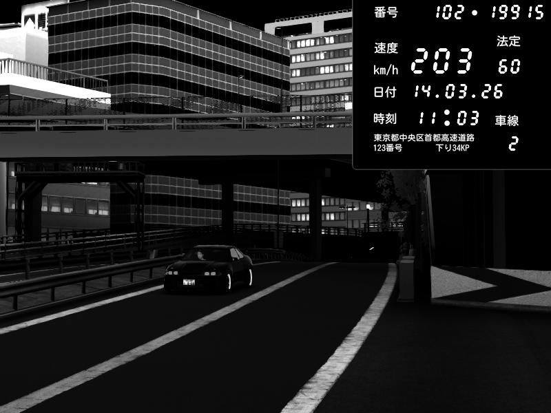 | 2026/03/15 01:29 | C1外回り 新富町 | 193 / 60 km/h | Kurokabe | Nissan Skyline GTR R33 (S3 - Wangan) | CAPTURE |