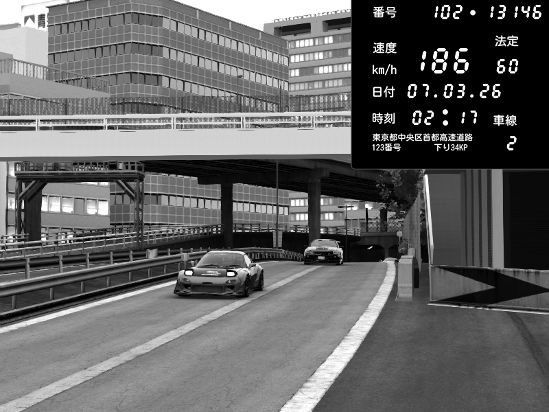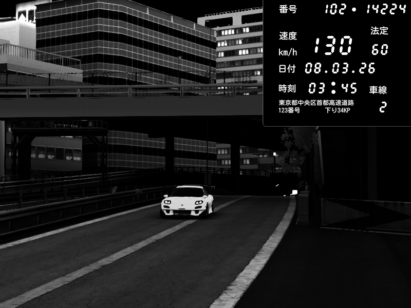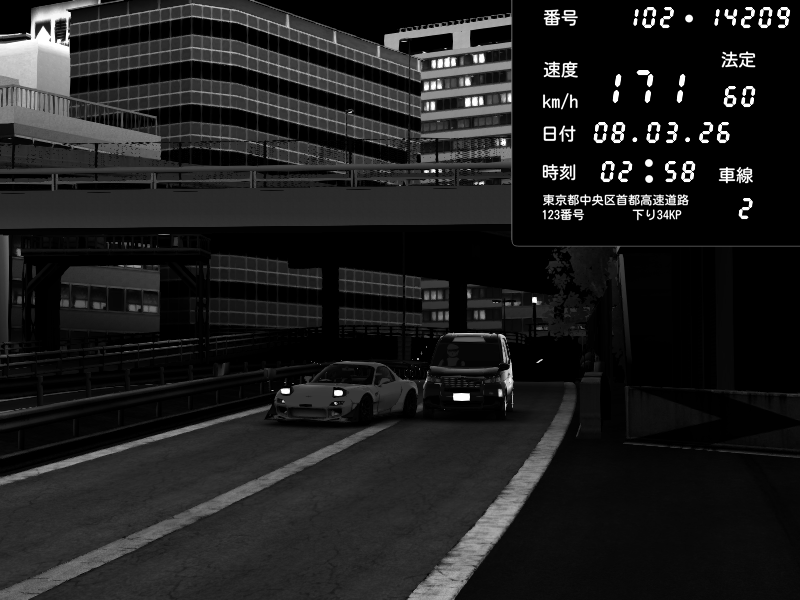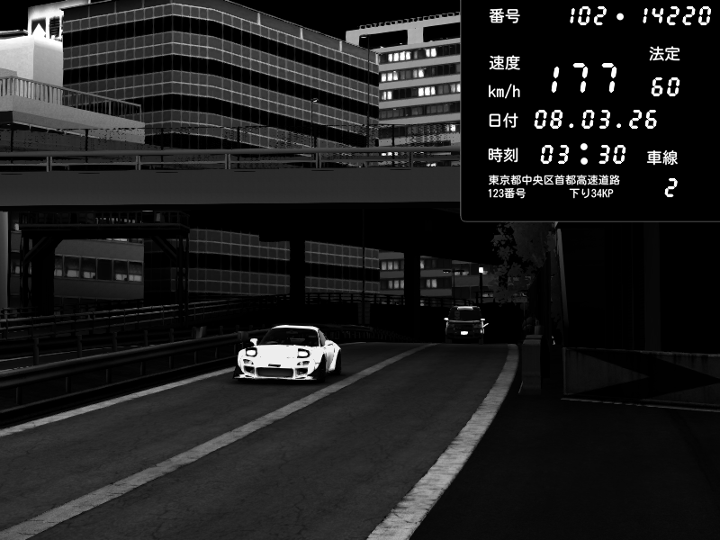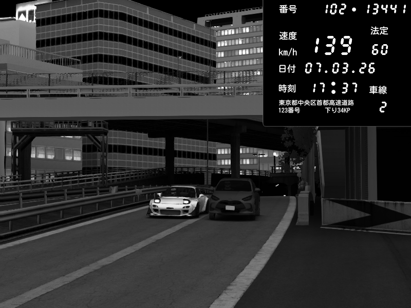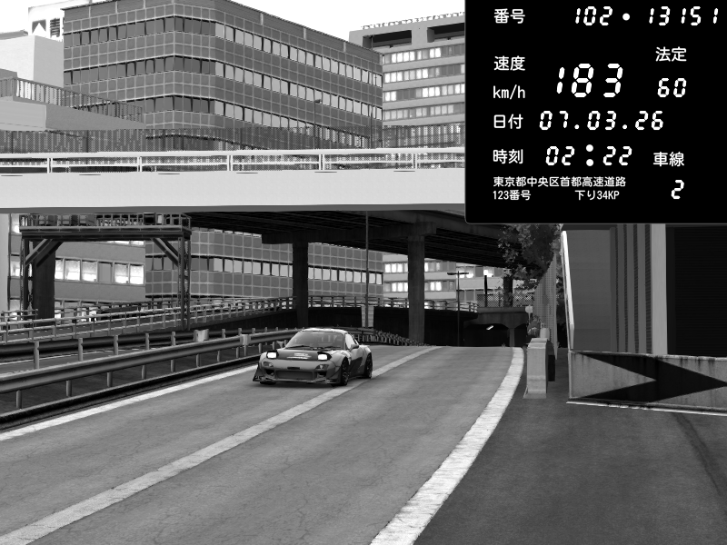 | 2026/03/07 23:15 | C1外回り 新富町 | 190 / 60 km/h | Escape77JP@pad | Mazda RX-7 FD3S RE Amemiya | CAPTURE |