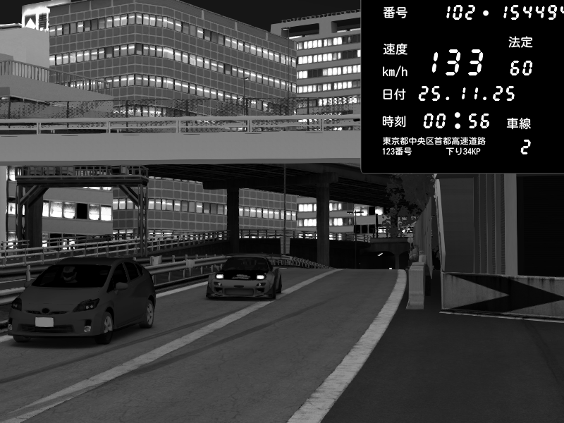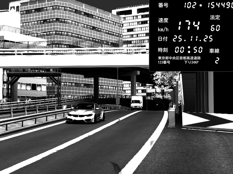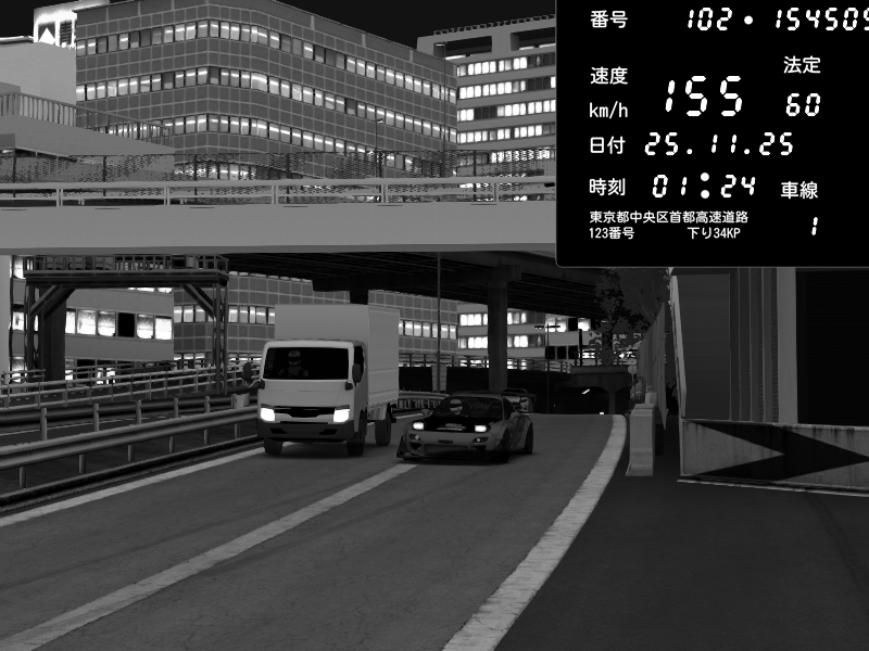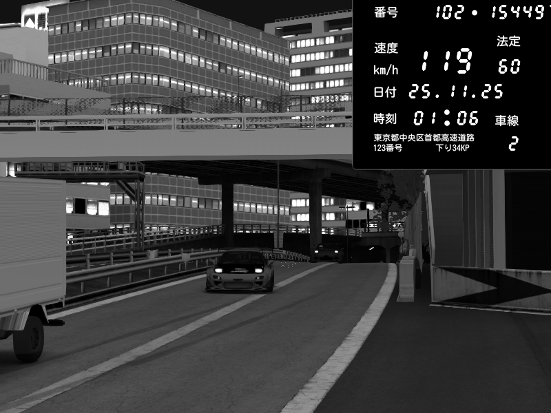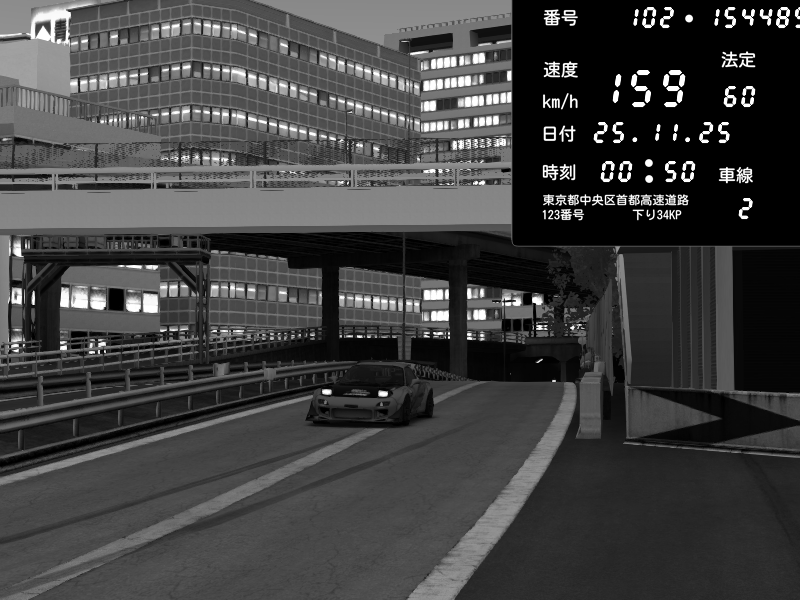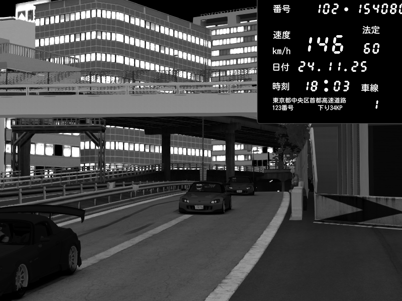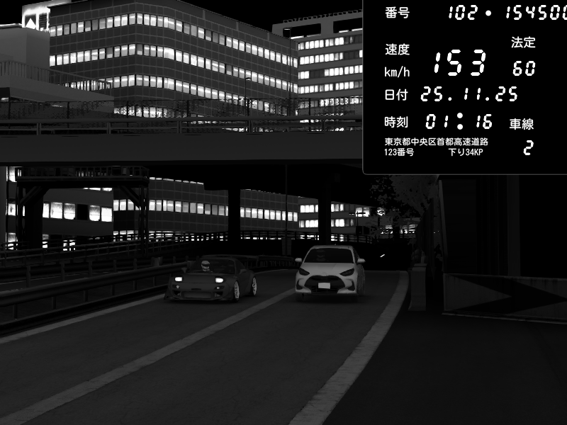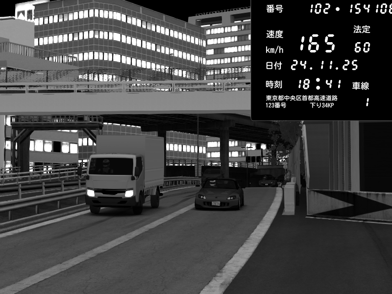 | 2025/11/25 01:02 | C1外回り 新富町 | 101 / 60 km/h | Player | Honda S2000 Turbo GT1 Amuse (AP1) | CAPTURE |