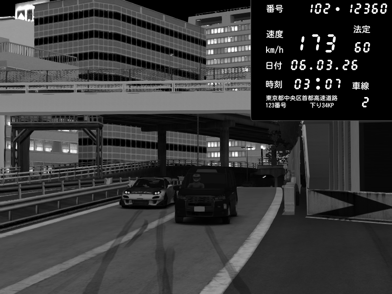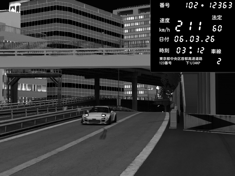 | 2026/03/07 03:23 | C1外回り 新富町 | 185 / 60 km/h | GUGUREKASU | Pit Road M - Mitsubishi GTO Twin Turbo | CAPTURE |