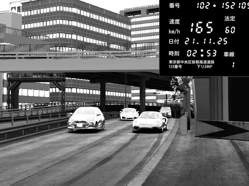 | 2025/11/21 02:53 | C1外回り 新富町 | 165 / 60 km/h | ojisandrift | Porsche 911 GT3 RS | CAPTURE |