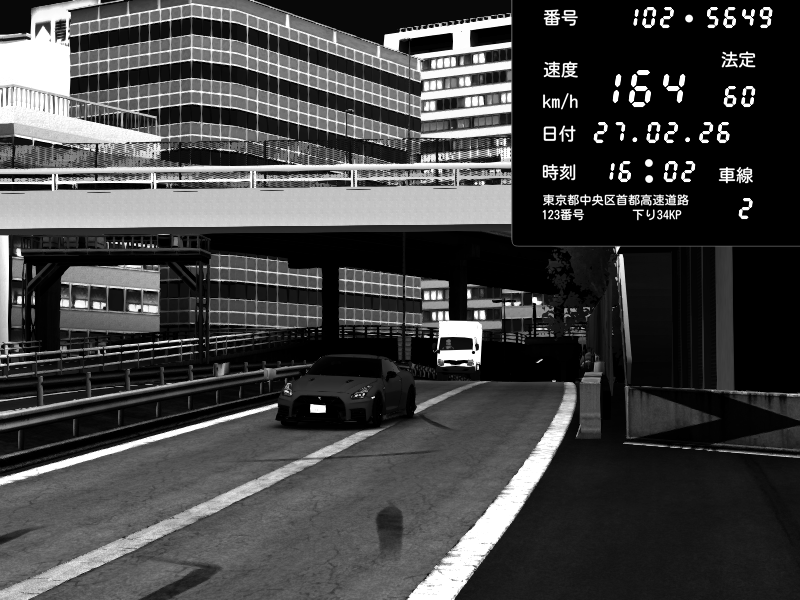 | 2026/02/27 16:02 | C1外回り 新富町 | 164 / 60 km/h | Kotone | Nissan GT-R NISMO 2017 | CAPTURE |