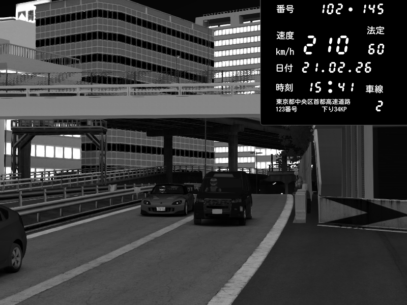 | 2026/02/21 15:58 | C1外回り 新富町 | 177 / 60 km/h | ナイトシフト | Honda S2000 (AP2 - Legendary) | CAPTURE |