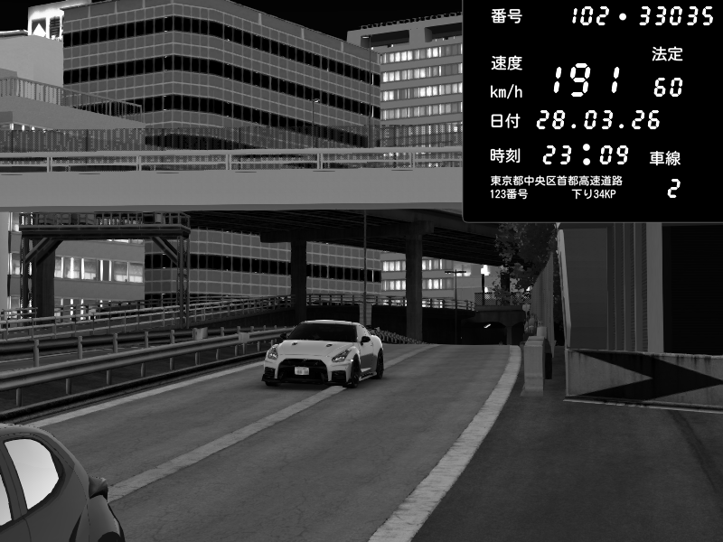 | 2026/03/29 03:38 | C1外回り 新富町 | 147 / 60 km/h | Efid | Nissan Skyline GT-R R34 Nismo Omori Factory S1 | CAPTURE |