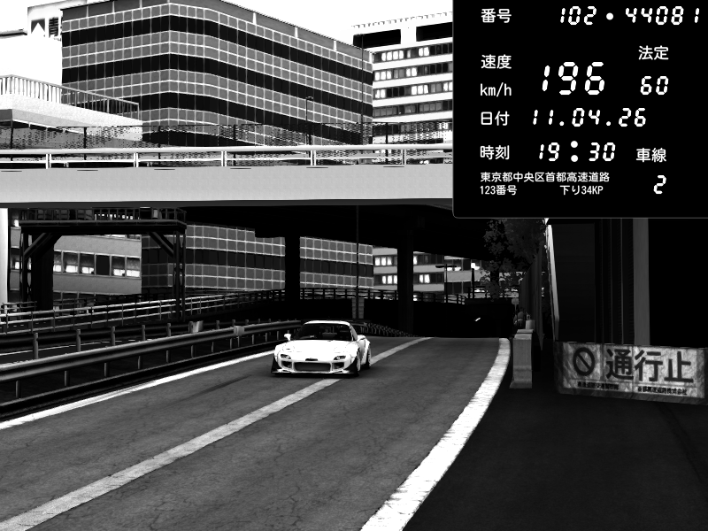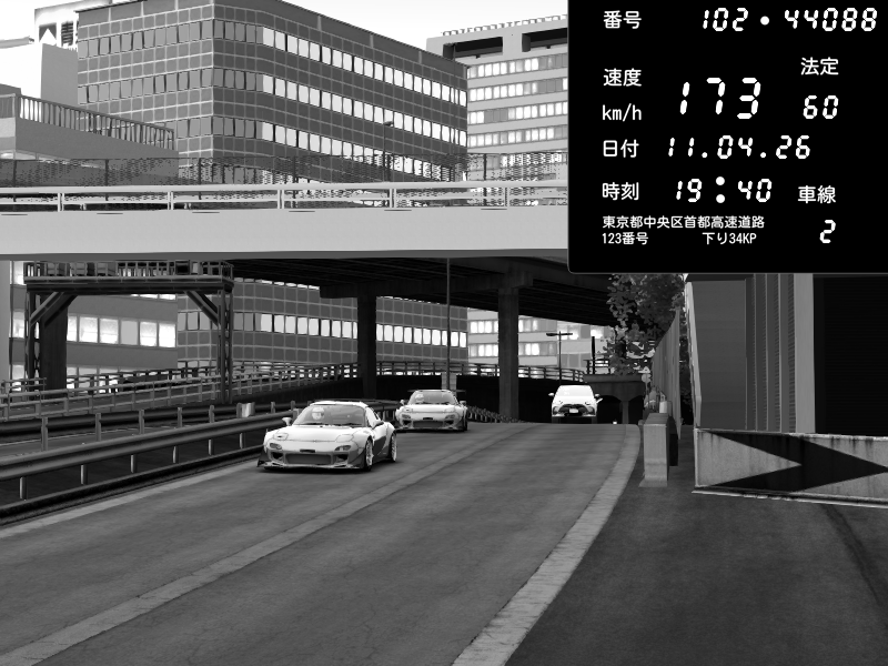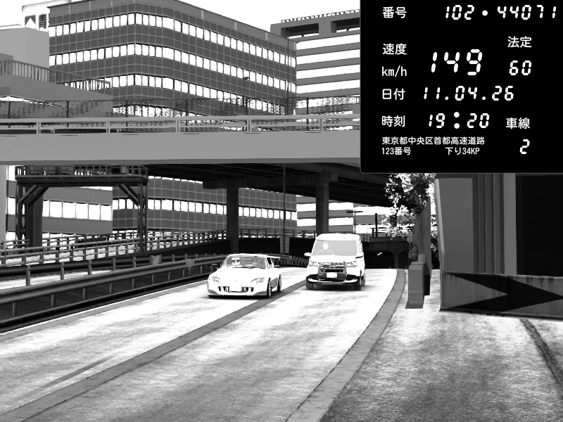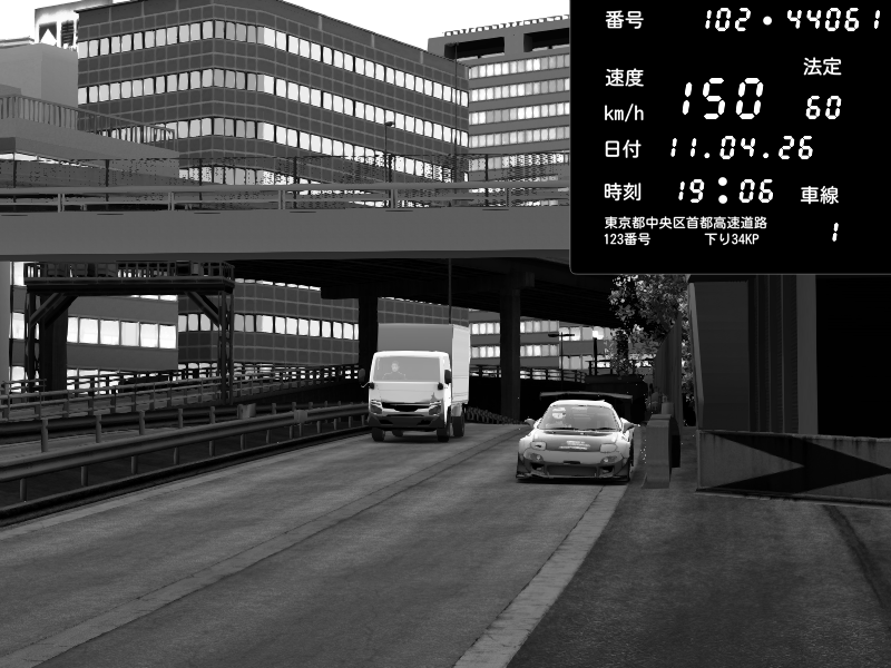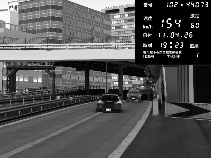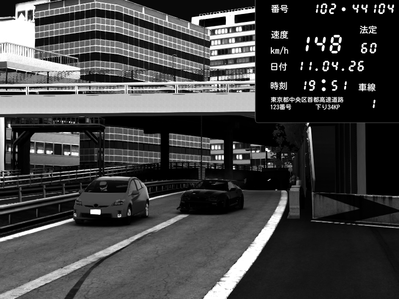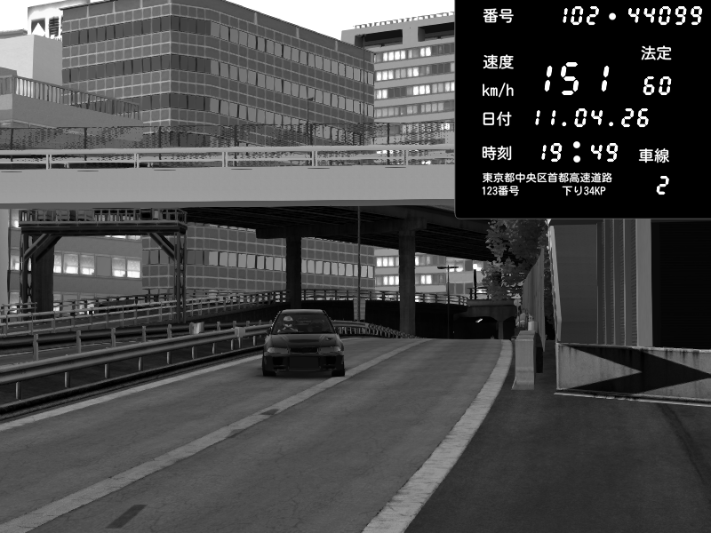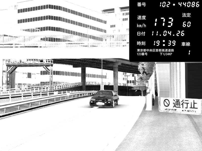 | 2026/04/11 19:46 | C1外回り 新富町 | 155 / 60 km/h | Pixy | Pit Road M - Mitsubishi GTO Twin Turbo | CAPTURE |