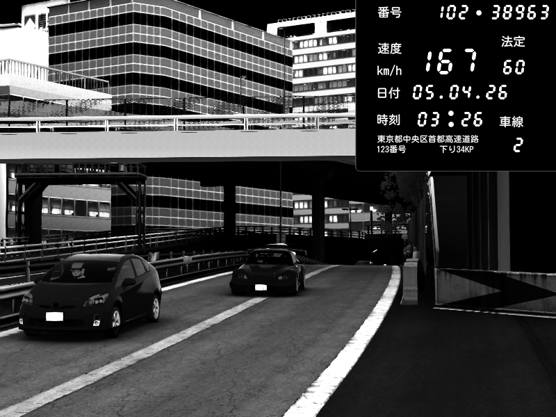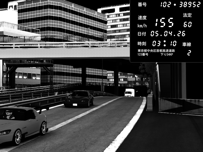 | 2026/04/05 21:40 | C1外回り 新富町 | 190 / 60 km/h | U-0/S.R.C | Honda S2000 (AP2 - Legendary) | CAPTURE |