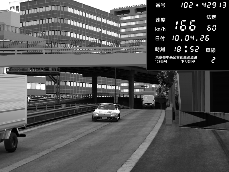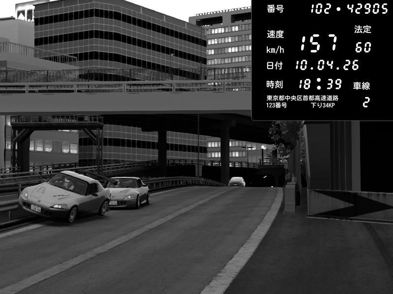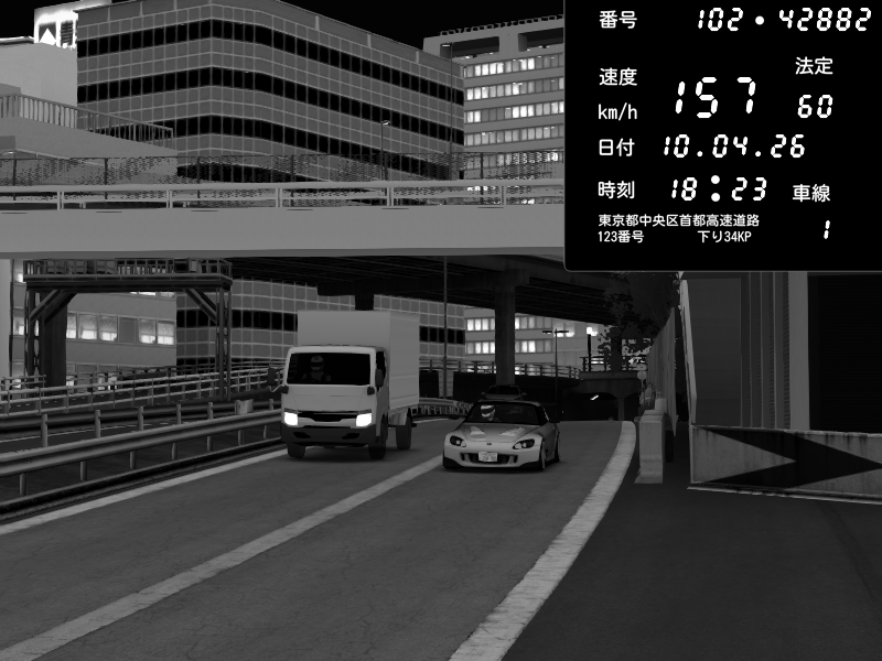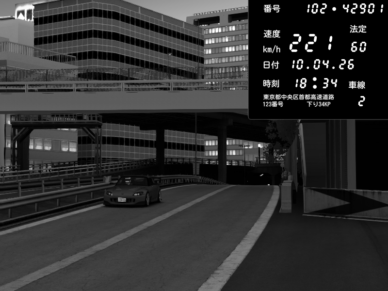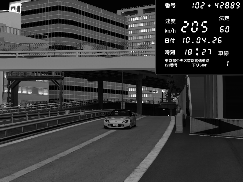 | 2026/04/10 18:30 | C1外回り 新富町 | 204 / 60 km/h | Pen | Honda S2000 (AP2 - Legendary) | CAPTURE |